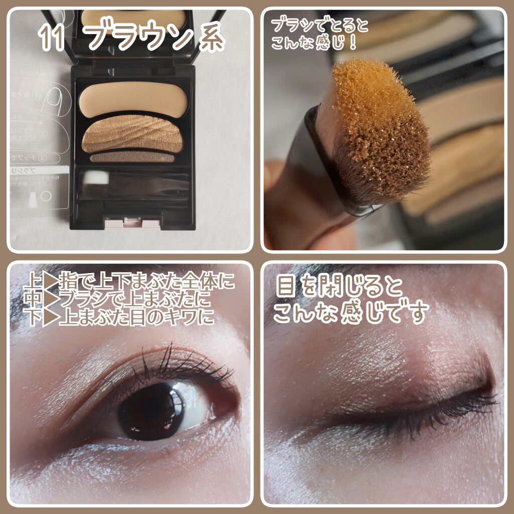 - ブラシひと塗りで3色グラデーションが決まるアイシャドウ。 うるおい効果もあるまぶたベースが3色シャドウの密着と発色を高め、メイクののりが良くない日もしっとり質感のグラデーションに仕上がります。 ●色の境目がきれいになじむウエーブ設計*を新採用 ●保湿成分配合[ヒアルロン酸] ●塗る色を上下間違いにくい白黒ブラシつき※鏡つき。(拡大鏡ではありません。) *色と色の間に混色ができる設計