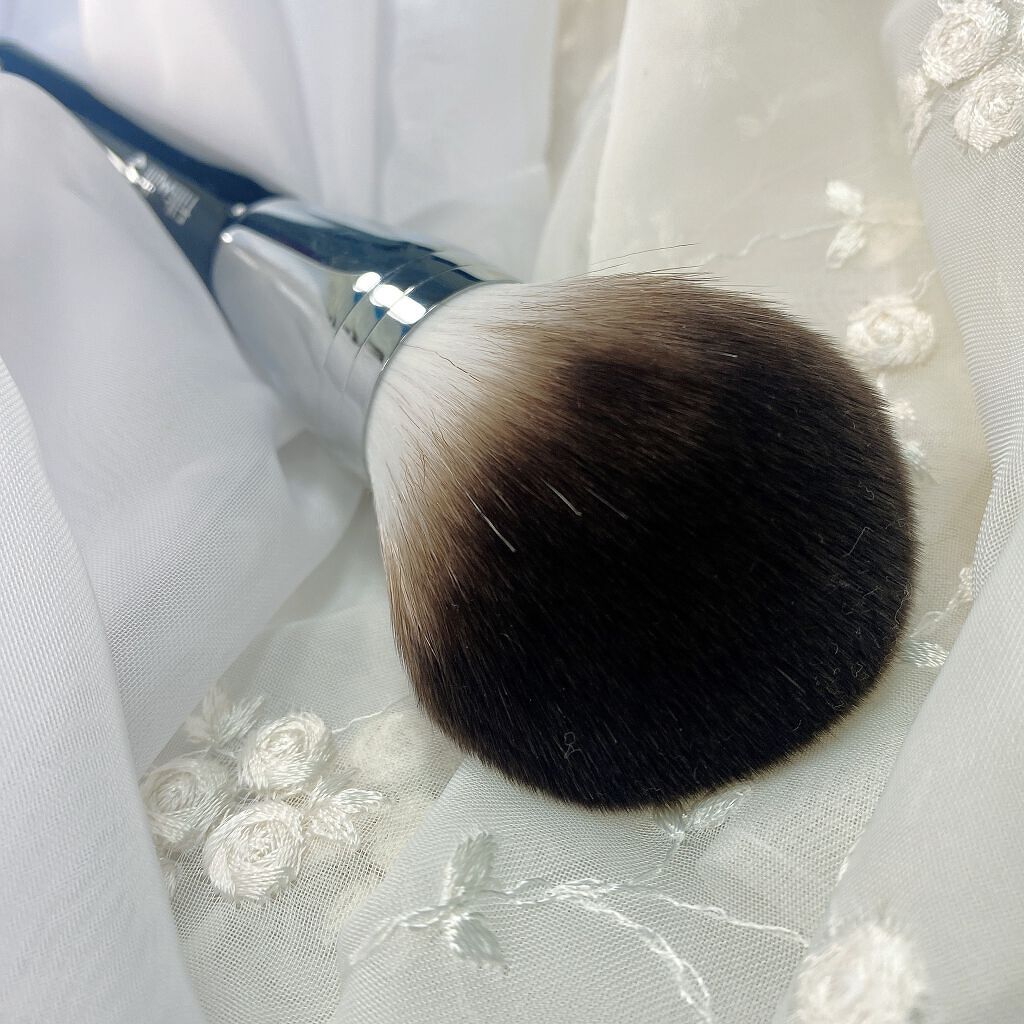 - ラージサイズでマルチに使える贅沢パウダーブラシ 粉含み良く、メイクアップをプロのような仕上げへ近づけます。 パウダーを適量とり、顔の内側から外に向けて軽く優しく広げて塗ります。