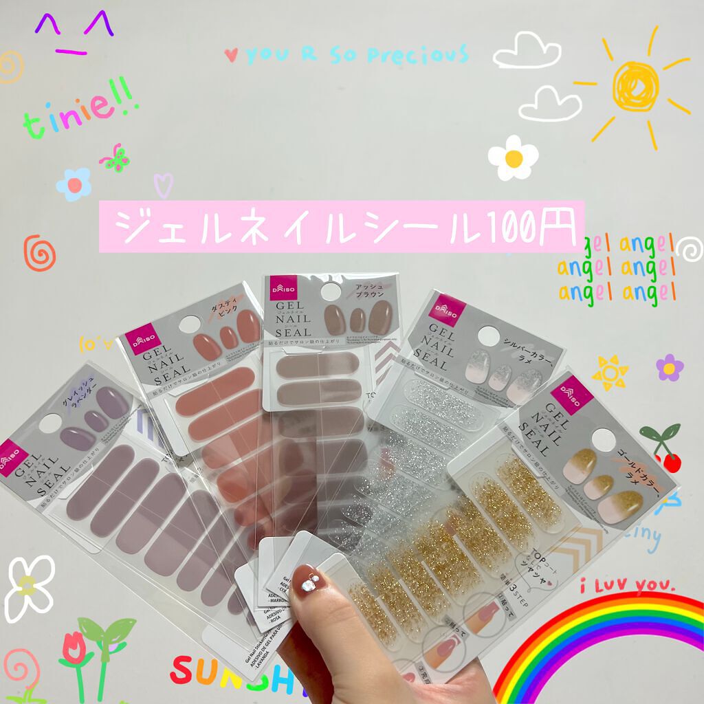 ずっと気になっていたDAISOのジェルネイルシールを使ってみた😊種類がたくさんあって、まず選ぶ楽しみがある🥹!!!可愛いデザインが沢山💓硬化タイプなので貼ってから、自前のライトで硬化しました✨(60秒)GelMeシリーズとかに比べると、やっぱ...