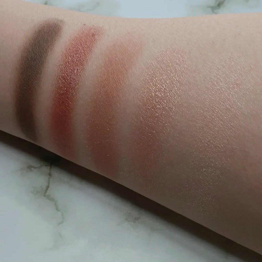 そして今までにない新しい質感❗ 粉なんだけど硬めのクリームのような感じ😳 繊細なシルバーラメが煌めくマット4色のパレットで、ナチュラルな発色🧡 硬めのクリームみたいな質感が、しっとりとしていて肌にピタッと密着👍❤️ 粉飛びもしないです‼ 肌馴染みが良いカラーなので、普段使いもしやすいかな🙋♀️