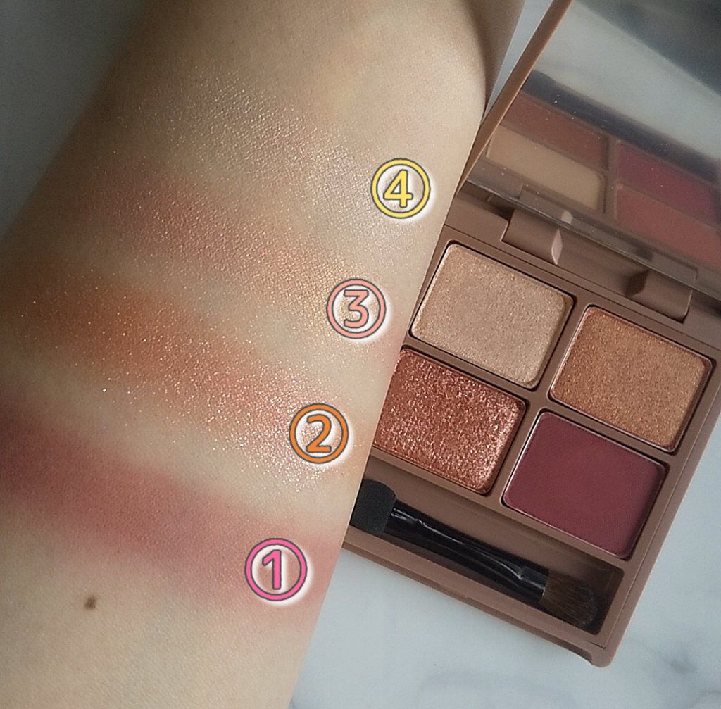 もう見た瞬間ハートの可愛さにめちゃときめいた これはもうベスコスですね! 全体的なバランスも良くてマット、ラメ、パールと一通りそろってます チークも白みのあるオレンジカラーとピーチカラー ハートの部分は白っぽいカラーとピンクっぽいカラー ピンクは結構カラーがでるのでノーズには向かないかな、頬のハイライト兼チークとしてがおすすめ