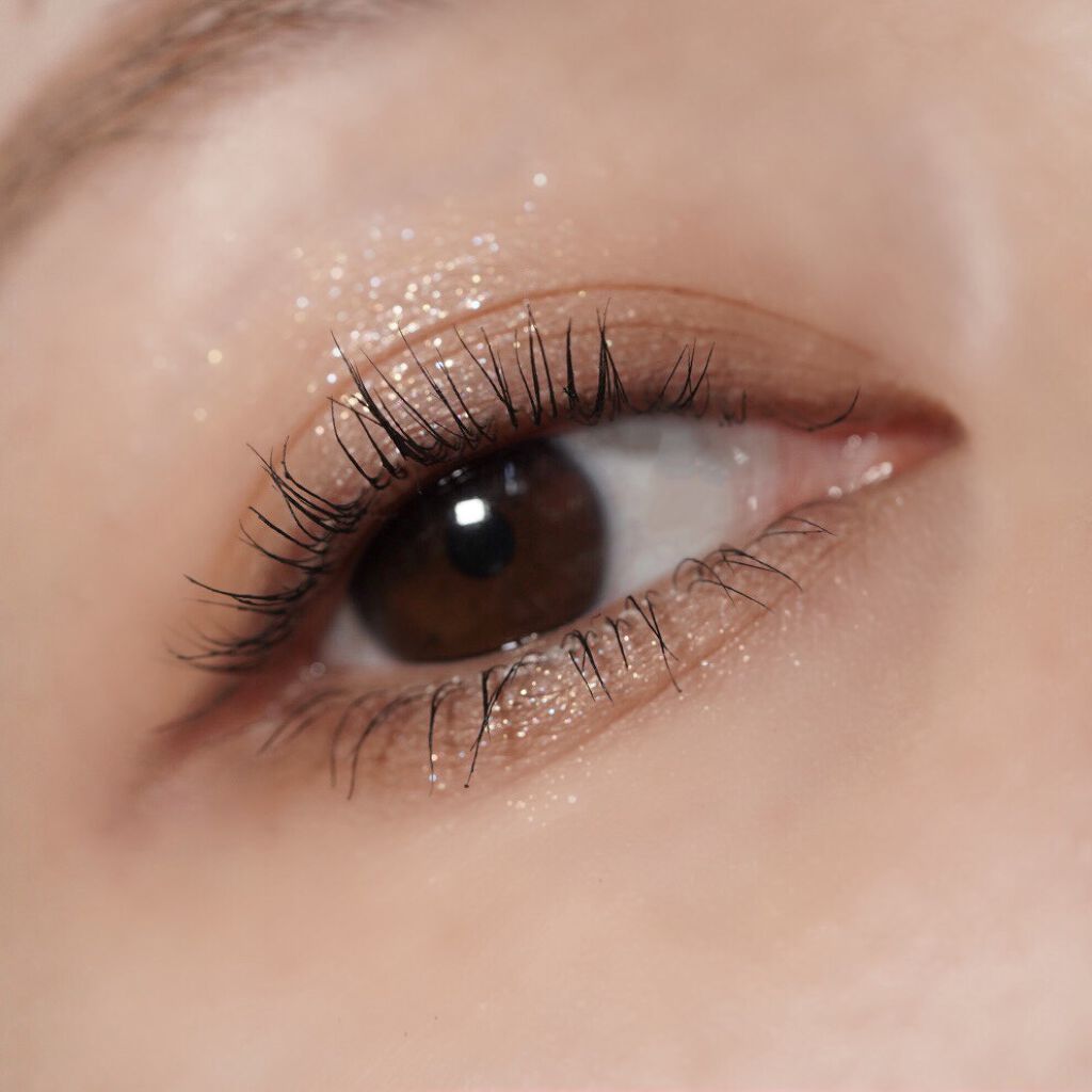 よくパレットのなかで明るいカラーをベースにまぶたに広く塗ることが多いのですが、パール感のあるカラーを避ける🙆♀️! パール感たっぷりの明るいカラーは涙袋に使うぐらい光を集めてぷっくり見せてくれるので、まぶたに広く使うと腫れぼったく見えがち😓 目元を明るくみせてくれたり、次に使うアイシャドウをぼかしやすくしてくれるけど、すっ飛ばしてメインのカラーを塗っちゃう✊🏻❤️🔥 涙袋にはたっぷり塗ってぷっくり見せる🙆♀️💕 シルキースフレアイズのマットタイプはすごく優れているな〜と感じました☺️💗 赤やオレンジなどは、入れすぎると腫れぼったく見えやすいので、見せたいカラーは下まぶた目尻にのせて色をたのしむ♡♡ パール感なしの透けマットだけじゃ物足りない… そう感じさせない華やかなラメが左上に入っているので黒目上と涙袋にのせるとすごく可愛い仕上がりに😍! 厄介な左右差のお陰でマットアイシャドウが好きになりました😌💕