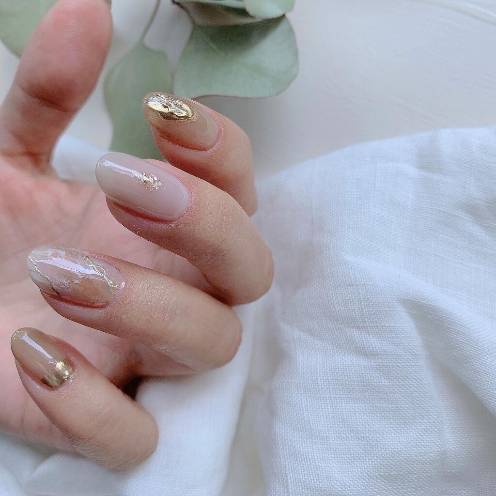 ベージュオフィスネイル@pa_nailを使ったオフィスネイル時間がない時は、発色の良いカラーを一度塗りで仕上げる💅ワンカラーでは物足りなかったので、親指と薬指にラメをプラス✨paネイル公式アンバサダー2026に応募します🙋♀️#paネイル公...