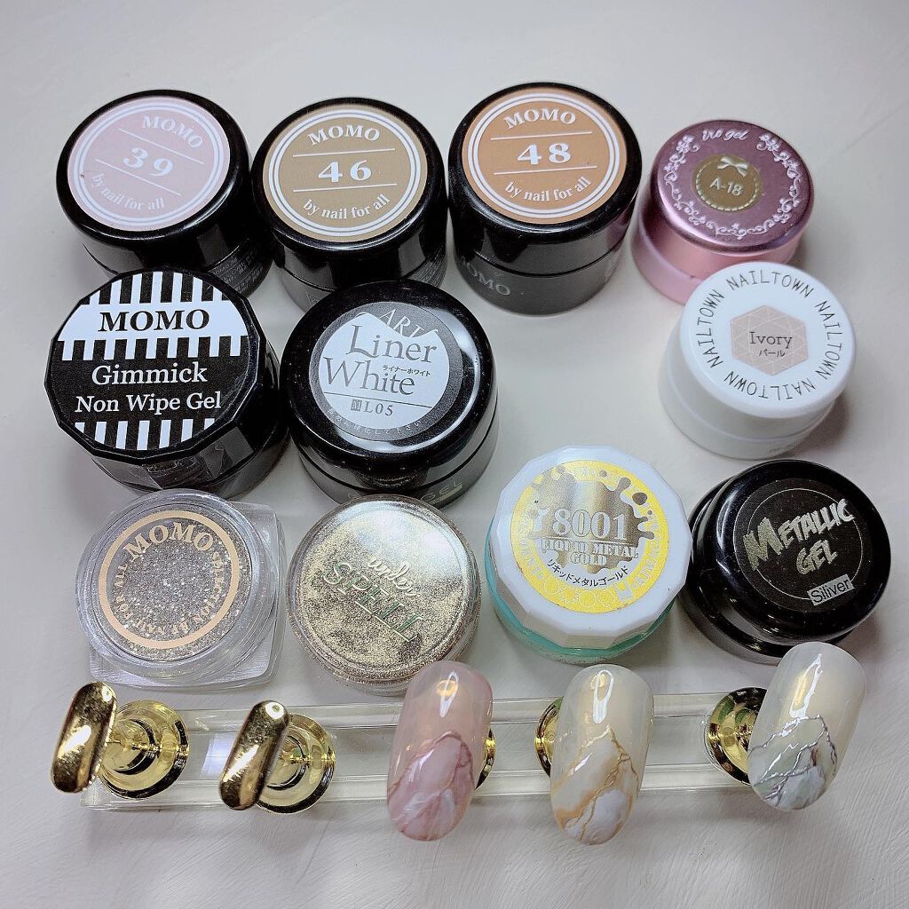真ん中のはネイルタウン さんのパールジェルであえてハケ筋出してます😍 ベールみたいな波っぽいのは前postのライナーホワイトで❤︎ イロジェルはテクスチャーが固いというかねばっこくて塗りにくい🥲特にマットカラー。