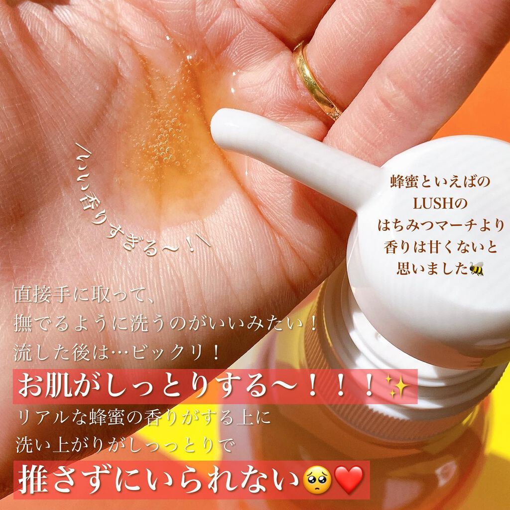 - はちみつで優しく、撫で洗う新感覚*のボディウォッシュ。全身触れ たくなるほどの惹かれ肌へ。たっぷりのはちみつで贅沢トリートメント。 *自社比