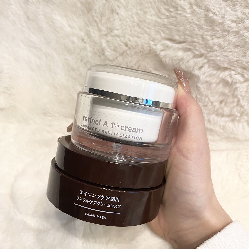 レチノールは肌への効果 肌表面の表皮では細胞のターンオーバーを促進し、皮膚のゴワつき・きめをケア、小ジワをなめらかにします。 レチノールは厚生労働省からも【しわを改善する効果あり】と認められてる! 皮剥けした方が効果もすぐ感じられます🥰 初めて使う場合はほんとーに少量から初めて肌を慣れさせた方がいいみたいです! レチノールは夜のみ! 皮剥けしても大丈夫!という方はクリームに混ぜるレチノールクリームの量を【小豆の大きさ】ぐらい! 体は両腕・デコルテ、お腹・お尻、両足と3分割で塗るのですが、いつものクリーム量にレチノール1円玉分ぐらい はじめての皮剥けが始まると少し落ち込みますが笑 剥けた後は本当にツルツルになります🥺 私は敏感肌ではなく、強いわけでもなく普通の肌。敏感肌の方は米粒ほどでも皮剥けするかもしれないので胡麻の大きさで、本当に少量から試した方がいいと思います!