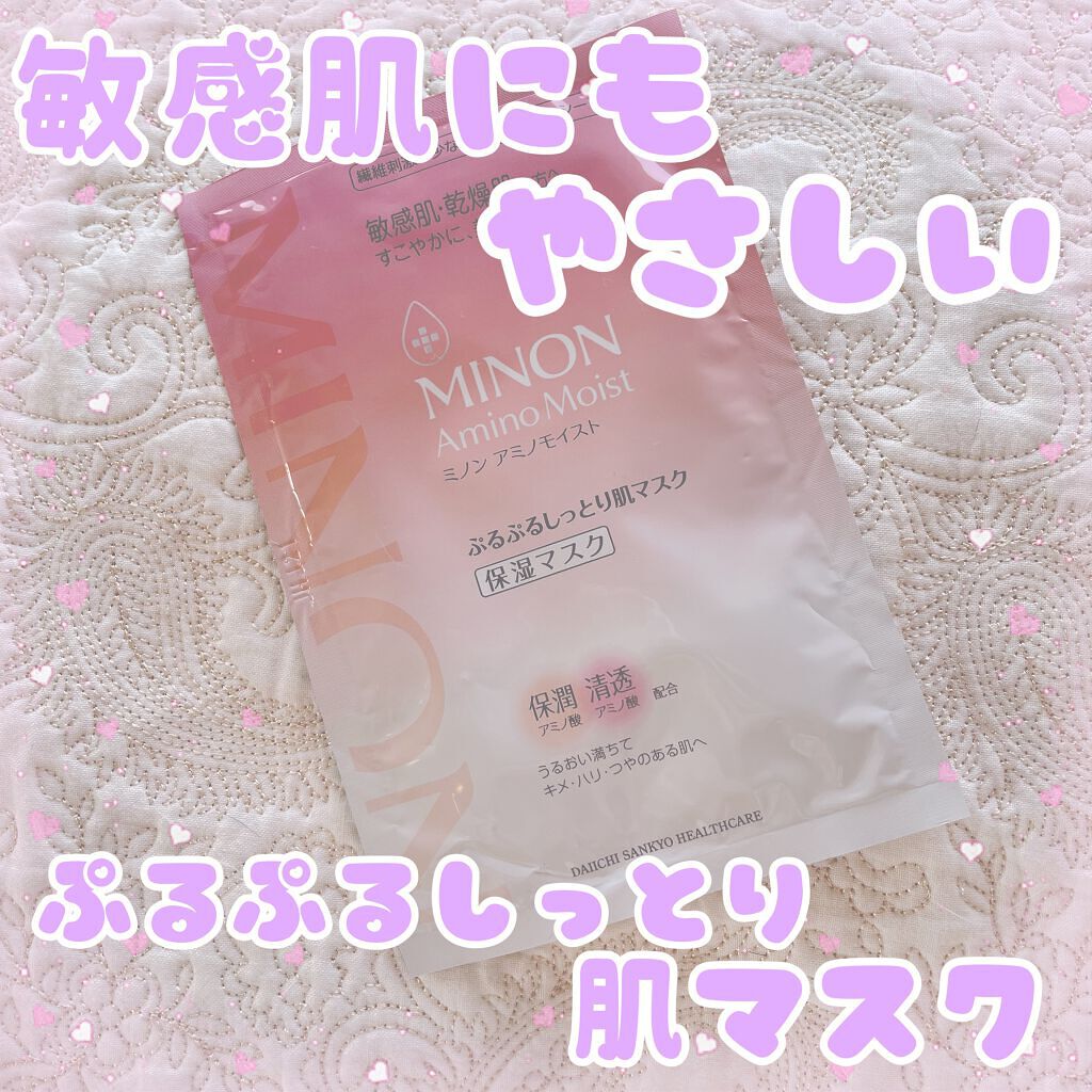 - 思わず触れたくなるほどみずみずしい肌へ。うるおって透明感。 乾燥による小ジワを目立たなくします(効能評価試験済み) 水分を保つ機能が低下しがちな角質層に、バリア機能をサポートする保湿成分を補給 ぷるぷるジェルがしみこんだ密着やわらかシートで、液ダレしません ◎ミノン アミノモイストのシートマスクは化粧水で肌を整えた後にお使いいただく「美容液マスク」です。 週に1-2回のスペシャルケアとしておすすめです♪