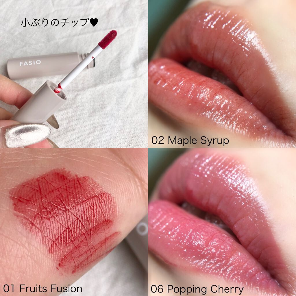 - <01 Fruits Fusion> 水、水添ポリイソブテン、BG、ワセリン、トリイソステアリン酸ポリグリセリル-2、ダイマージリノール酸(フィトステリル/イソステアリル/セチル/ステアリル/ベヘニル)、TEA、エタノール、トリエチルヘキサノイン、オリーブ果実油、ゴマ種子油、サフラワー油、シア脂、ステビア葉/茎エキス、トコフェロール、ホホバ種子油、PEG-10水添ヒマシ油、(アクリル酸Na/アクリロイルジメチルタウリンNa)コポリマー、(アクリレーツ/アクリル酸アルキル(C10-30))クロスポリマー、イソヘキサデカン、オレイン酸ソルビタン、スクワラン、ステアリン酸、ステアリン酸グリセリル、セテアリルアルコール、ベヘニルアルコール、ポリソルベート80、フェノキシエタノール、黄4、青1、赤227、橙205 <02 Maple Syrup> 水、水添ポリイソブテン、BG、ワセリン、トリイソステアリン酸ポリグリセリル-2、ダイマージリノール酸(フィトステリル/イソステアリル/セチル/ステアリル/ベヘニル)、TEA、エタノール、トリエチルヘキサノイン、オリーブ果実油、ゴマ種子油、サフラワー油、シア脂、ステビア葉/茎エキス、トコフェロール、ホホバ種子油、PEG-10水添ヒマシ油、(アクリル酸Na/アクリロイルジメチルタウリンNa)コポリマー、(アクリレーツ/アクリル酸アルキル(C10-30))クロスポリマー、イソヘキサデカン、オレイン酸ソルビタン、スクワラン、ステアリン酸、ステアリン酸グリセリル、セテアリルアルコール、ベヘニルアルコール、ポリソルベート80、フェノキシエタノール、黄4、青1、赤227、橙205 <03 Peach Rhapsody> 水、水添ポリイソブテン、BG、ワセリン、トリイソステアリン酸ポリグリセリル-2、ダイマージリノール酸(フィトステリル/イソステアリル/セチル/ステアリル/ベヘニル)、TEA、エタノール、トリエチルヘキサノイン、オリーブ果実油、ゴマ種子油、サフラワー油、シア脂、ステビア葉/茎エキス、トコフェロール、ホホバ種子油、PEG-10水添ヒマシ油、(アクリル酸Na/アクリロイルジメチルタウリンNa)コポリマー、(アクリレーツ/アクリル酸アルキル(C10-30))クロスポリマー、イソヘキサデカン、オレイン酸ソルビタン、カルボマー、スクワラン、ステアリン酸、ステアリン酸グリセリル、セテアリルアルコール、ベヘニルアルコール、ポリアクリル酸アンモニウム、ポリソルベート80、水酸化Al、フェノキシエタノール、酸化チタン、黄4、青1、赤227、橙205 <04 Paradise Mango> 水、水添ポリイソブテン、BG、ワセリン、トリイソステアリン酸ポリグリセリル-2、ダイマージリノール酸(フィトステリル/イソステアリル/セチル/ステアリル/ベヘニル)、TEA、エタノール、トリエチルヘキサノイン、オリーブ果実油、ゴマ種子油、サフラワー油、シア脂、ステビア葉/茎エキス、トコフェロール、ホホバ種子油、PEG-10水添ヒマシ油、(アクリル酸Na/アクリロイルジメチルタウリンNa)コポリマー、(アクリレーツ/アクリル酸アルキル(C10-30))クロスポリマー、イソヘキサデカン、オレイン酸ソルビタン、スクワラン、ステアリン酸、ステアリン酸グリセリル、セテアリルアルコール、ベヘニルアルコール、ポリソルベート80、フェノキシエタノール、黄4、青1、赤227、橙205 <05 Peach Beige> 水、水添ポリイソブテン、BG、ワセリン、トリイソステアリン酸ポリグリセリル-2、ダイマージリノール酸(フィトステリル/イソステアリル/セチル/ステアリル/ベヘニル)、TEA、エタノール、トリエチルヘキサノイン、オリーブ果実油、ゴマ種子油、サフラワー油、シア脂、ステビア葉/茎エキス、トコフェロール、ホホバ種子油、PEG-10水添ヒマシ油、(アクリル酸Na/アクリロイルジメチルタウリンNa)コポリマー、(アクリレーツ/アクリル酸アルキル(C10-30))クロスポリマー、イソヘキサデカン、オレイン酸ソルビタン、カルボマー、スクワラン、ステアリン酸、ステアリン酸グリセリル、セテアリルアルコール、ベヘニルアルコール、ポリアクリル酸アンモニウム、ポリソルベート80、水酸化Al、フェノキシエタノール、酸化チタン、黄4、青1、赤227、橙205 <06 Popping Cherry> 水、水添ポリイソブテン、BG、ワセリン、トリイソステアリン酸ポリグリセリル-2、ダイマージリノール酸(フィトステリル/イソステアリル/セチル/ステアリル/ベヘニル)、TEA、エタノール、トリエチルヘキサノイン、オリーブ果実油、ゴマ種子油、サフラワー油、シア脂、ステビア葉/茎エキス、トコフェロール、ホホバ種子油、PEG-10水添ヒマシ油、(アクリル酸Na/アクリロイルジメチルタウリンNa)コポリマー、(アクリレーツ/アクリル酸アルキル(C10-30))クロスポリマー、イソヘキサデカン、オレイン酸ソルビタン、カルボマー、スクワラン、ステアリン酸、ステアリン酸グリセリル、セテアリルアルコール、ベヘニルアルコール、ポリアクリル酸アンモニウム、ポリソルベート80、水酸化Al、フェノキシエタノール、酸化チタン、黄4、青1、赤227、橙205 <07 Strawberry Night> 水、水添ポリイソブテン、BG、ワセリン、トリイソステアリン酸ポ