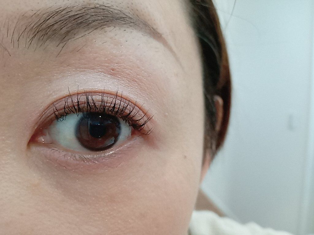 アイベースを使わなくてもきちんと密着してくれて崩れたり、二重線に溜まることもなく使えます! 塗り心地はスルスルぬれて、ベタつきが少ない印象でした。 高発色でラメも少し入っているので繊細に煌めきます。