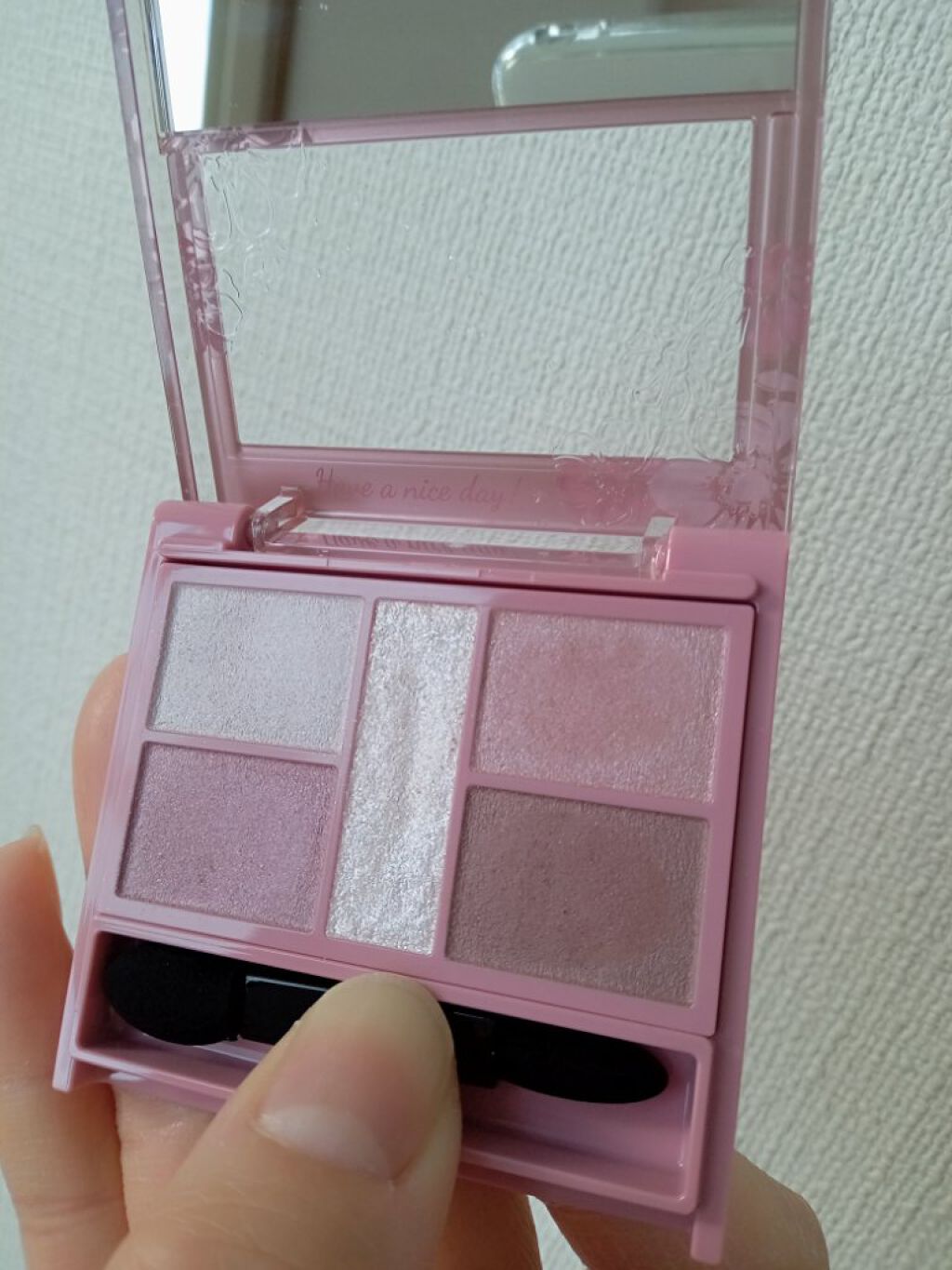 発色は、薄め。重ねて、重ねて色を出すニュアンスメイクに適しているかもしれません。 締め色のような濃い色も薄めなので、私は、別のアイシャドウで引き締めています。 でも、その下のキラキラアイシャドウがとても綺麗で、こればかり使ってしまいそう(笑)気に入りました。 粉質は、しっとりさらさらです。