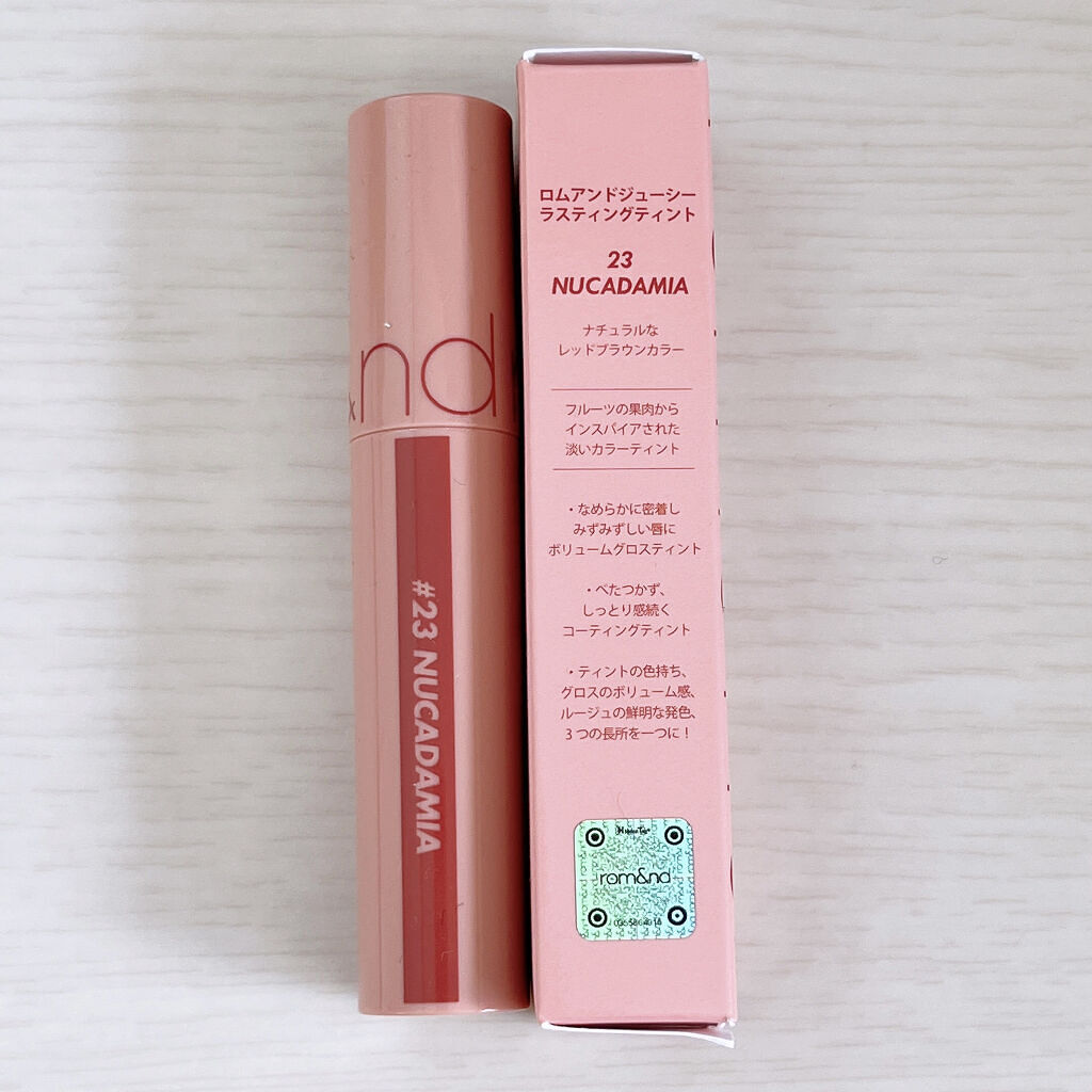 ...アラサーになってから、ヌーディーカラー好みになったんだけどロムアンドのティントが良すぎる🫶💓最近愛用しているのが☑︎ザジューシーラスティングティント 02NUCADAMIA(ヌカダミア)ナチュラルなレッドブラウンのカラーで大人上品のうる...