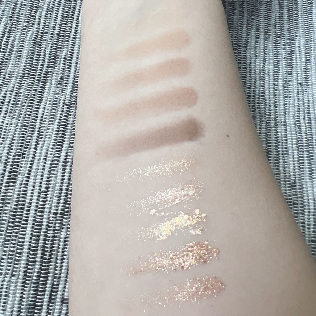 - ひとつのパレットにマット、シマー、グリッターなど多様な質感を贅沢に使用。塗る順序やカラーの組み合わせを変えるだけでデイリーメイクにも、特別な日のお出かけメイクにもできる優れもの。また粉飛びせず、まぶたにしっかり密着します。