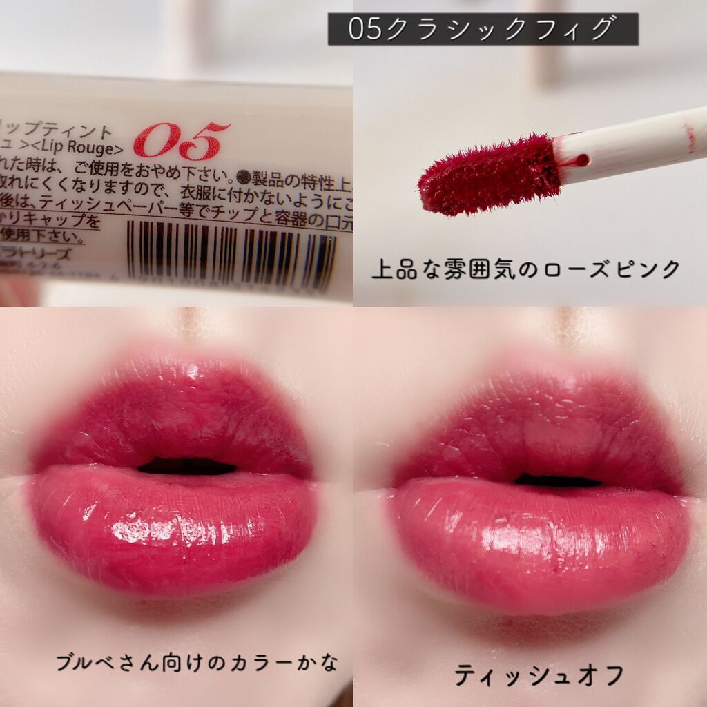 セザンヌ ウォータリーティントリップ ✔濡れたようなツヤ感が持続 ✔コップに色がつきにくいティント ✔美容保湿成分も配合 個人的に6番がツボ!✌️ 7色の中で一番好きかも・・絶妙なピンクベージュ そして今回の新色はさらにナチュラルで特に06は粘膜に近い可愛い色⭕️ 06番の次に私の好きなのは03のベージュブラウンかな・・🎀 06よりももう少し色がはっきりしてるブラウン系かな・・⭕️ ピンクやレッド、テラコッタと7色それぞれ絶妙に異なるカラーが揃っていてどれも使いやすいの✨ ブラシが柔らかめで良いしなり具合で、フチ取りもしやすいし、簡単にぷるんと仕上がる・・・⭕️ おすすめの塗り方はラフに塗って中央にたっぷり重ね塗り・・🤲 ティッシュオフしても血色感がしっかり残ってくれるよ・・・⭕️ 濡れツヤ感が可愛くて、持続性もあってこのお値段だもの・・(660円)✨🎉優秀すぎるね🤲