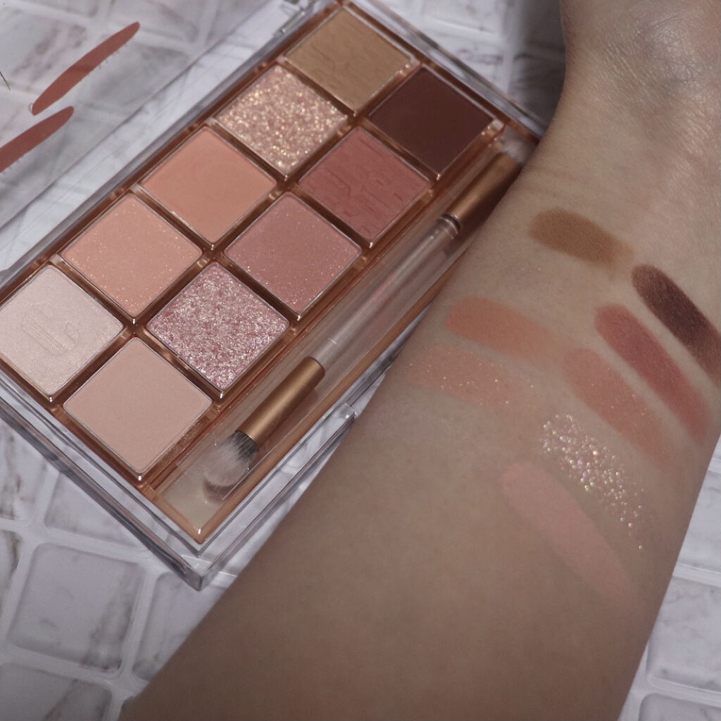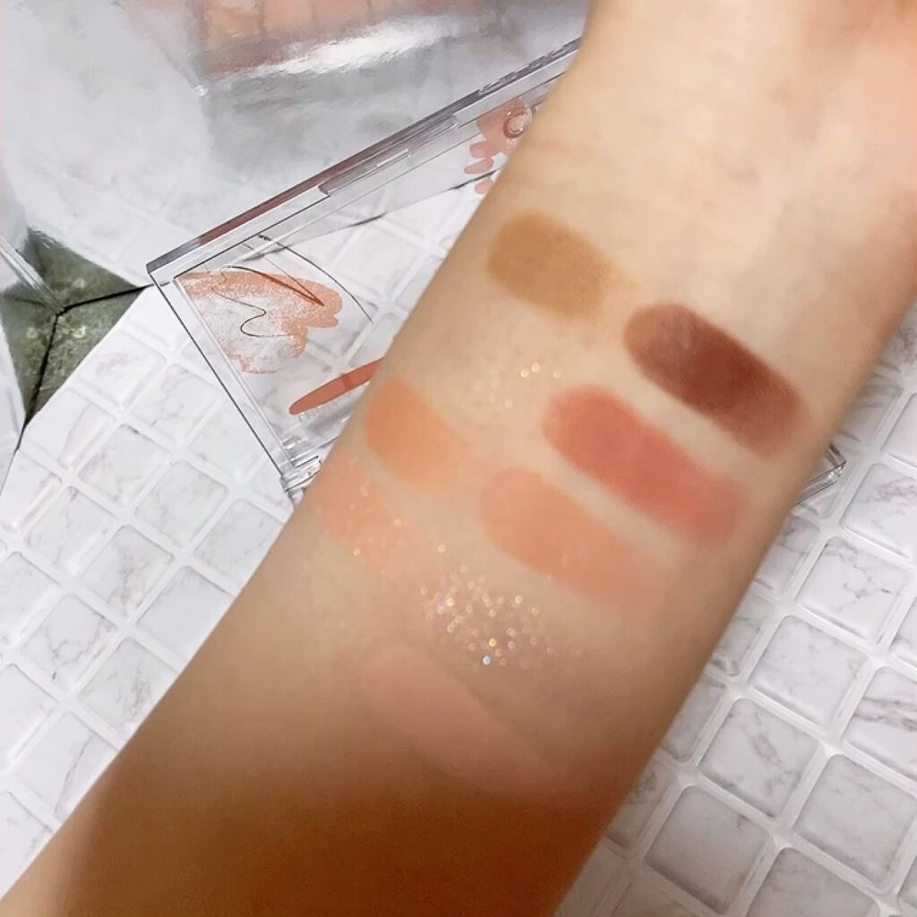コーラルピンクやくすみ過ぎないレッドが入っているパレット! ラメがイエローラメですごく可愛い! コーラルピンクとレッドのアイシャドウはラメ入りとマットタイプがあって気分に合わせて色んなメイクが出来ます お気に入りポイントは右上のホワイトシルバーのようなカラーにパールがたくさん入っていて涙袋に塗るとぷっくり見えるところ! カラーは一見濃く見えますがテクスチャーが柔らかく、発色は控えめでふんわり発色です 春メイクやピンクメイクがお好きな方にオススメしたい話題のアイシャドウでした!