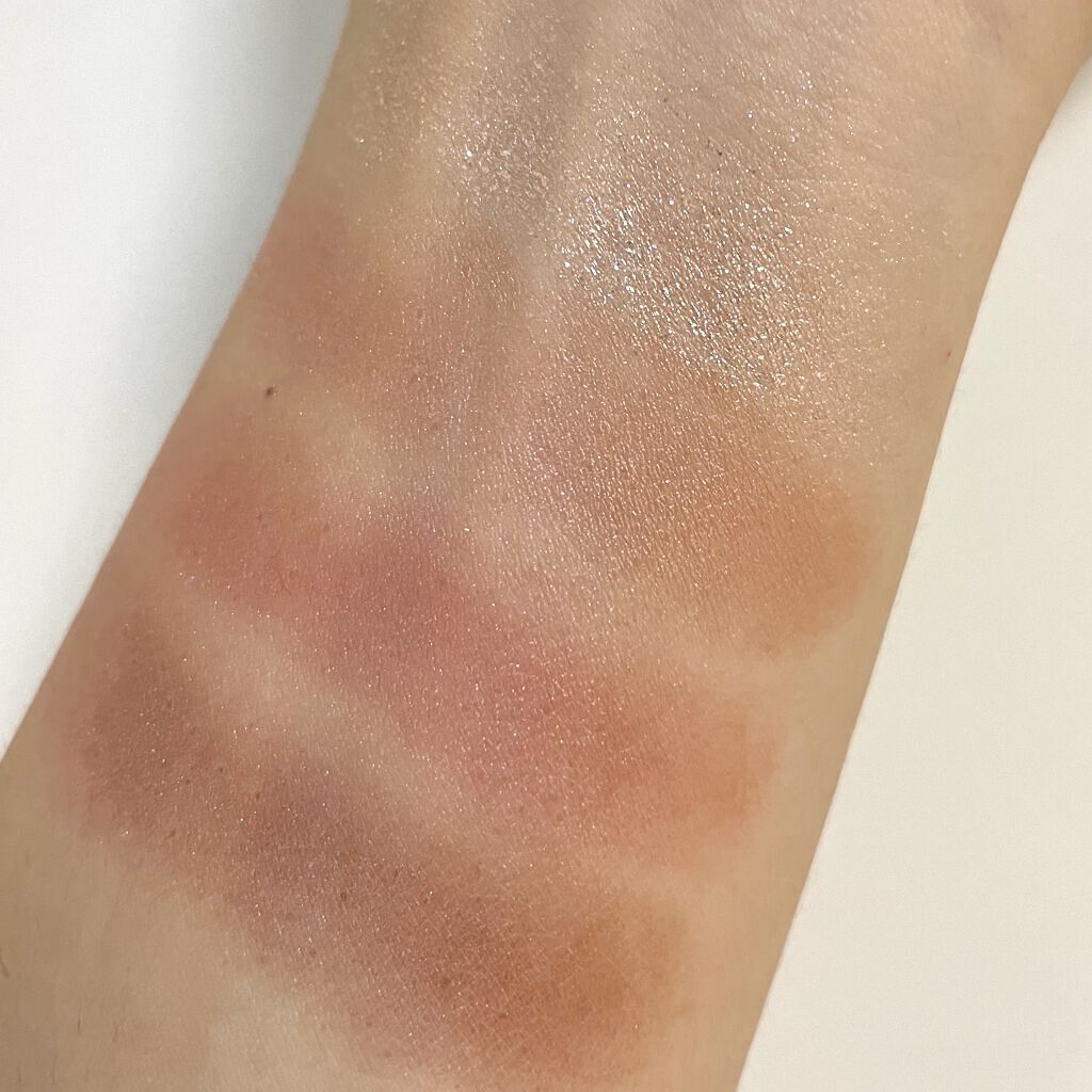 全体的に淡めです! イエベ向きな黄色みのあるブラウン系🤎 シマーなラメが可愛すぎる!! 密着度の高いラメでポンと乗せるだけで キラッキラ✨✨ 粉飛びもしないです! 発色はいいですが淡いので 初心者さんでも使いやすい!!!