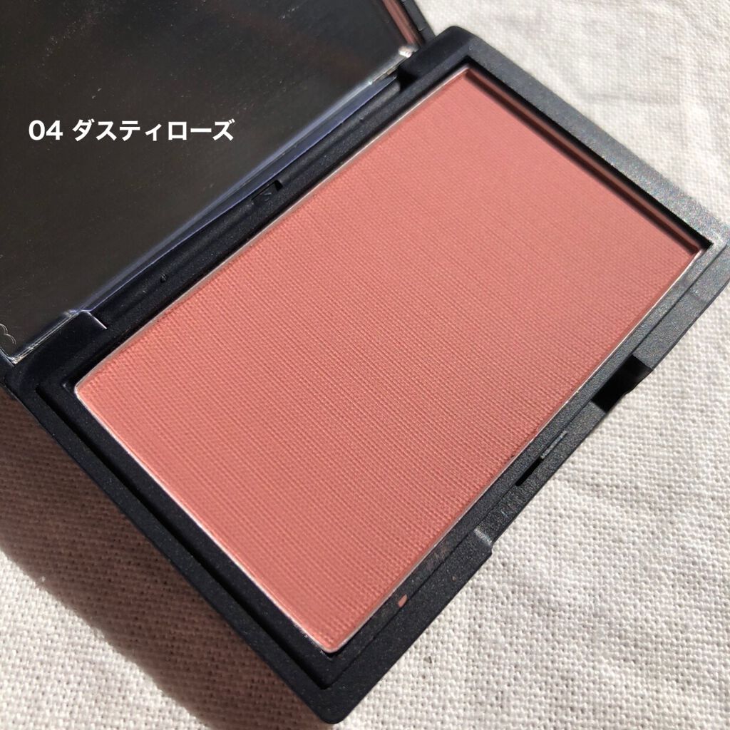 発色が大好きだから愛用してる! 3枚目の写真の上は指でしっかりつけたもの、下はブラシでふんわりつけた 顔につける時はブラシでふんわりつけるのがオススメ ブラシは付属していないからコンパクトで嬉しい! 何より深めの色が可愛すぎる!💞 ふんわり血色感がアップする!