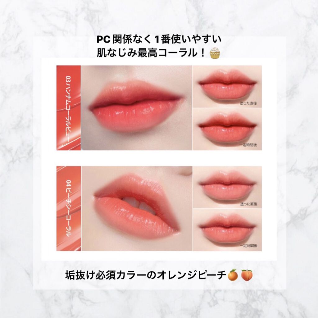 ちゅるんとしたツヤ&発色でぷるんと魅せれる人気のティントの新色をご紹介✨️シロップ級の光沢感が可愛い〜💗重ねても軽くて着け心地も快適◎盛れすぎない粘膜カラーでナチュラルに盛れます♪食事をしても崩れにくく、色もち&密着力抜群だから「飲み会リップ...