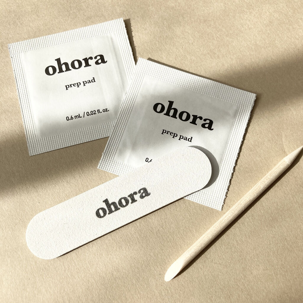 簡単で本格的!ohoraのセミキュアジェルネイル✨サロンに行ったような仕上がりのネイルが自宅で簡単に出来る♡①付属のプレップパッドで爪表面の油分・水分を拭き取る。②爪のサイズに合うシールを選び、キューティクルラインから少し間隔を空けて貼り爪の...