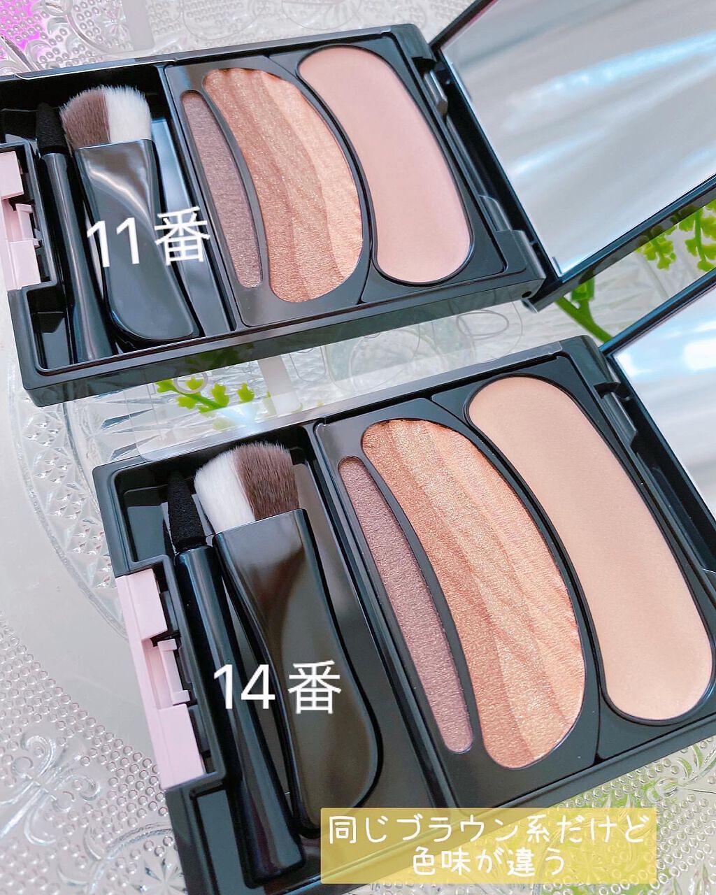 - ブラシひと塗りで3色グラデーションが決まるアイシャドウ。 うるおい効果もあるまぶたベースが3色シャドウの密着と発色を高め、メイクののりが良くない日もしっとり質感のグラデーションに仕上がります。 ●色の境目がきれいになじむウエーブ設計*を新採用 ●保湿成分配合[ヒアルロン酸] ●塗る色を上下間違いにくい白黒ブラシつき※鏡つき。(拡大鏡ではありません。) *色と色の間に混色ができる設計