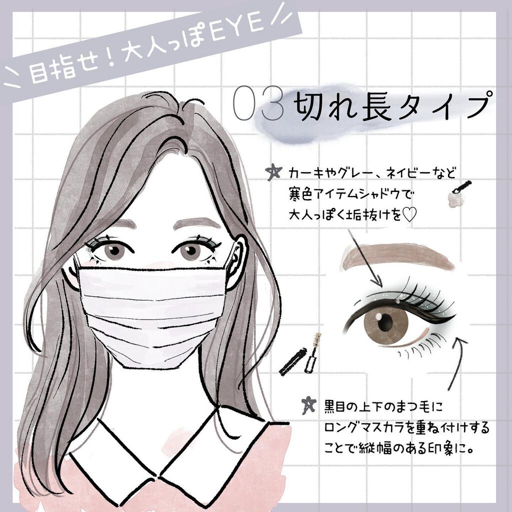 \目のタイプ別💖マスクメイク/⠀自分の目のかたちにあったメイク、知ってますか?💭⠀マスクをしている時は、目の印象がとっても大事👀✨⠀つり目・たれ目・切れ長・丸目の4つの目のかたち別マスクをする時もおすすめのアイメイクご紹介します📝💫スカルプ...