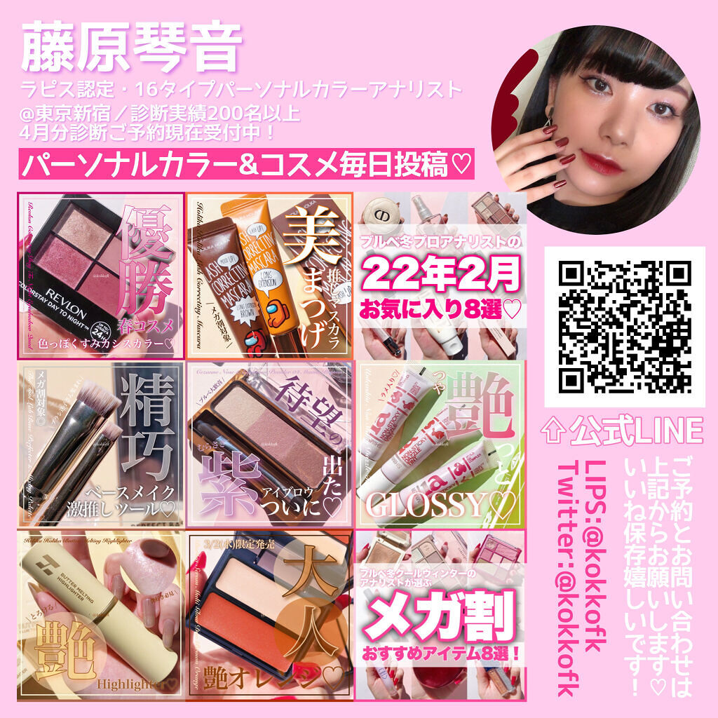 薄く唇に密着する新作マットティント。 マットなのにかなりしっとりとしていて 乾燥を感じなくてびっくりでした! 一気にこなれ感が出るトレンドカラーです♡ やや青みの華やかローズレッド 公式画像より鮮やかめに感じました。 やや黄みの強くて深いオレンジレッド ストロングオータムに超激推しです! やや黄みの非常に深く濃いダークブラウン ディープオータムに激推しです! かわいい雰囲気になれるピンクリップです♡ やや青みの柔らかいくすみピンクベージュ ミューテッドサマーにおすすめです! 青みの落ち着いたローズピンク やや青みのとても鮮やかなビビッドレッド ビビッドウィンターに特におすすめ! 既存マットティントよりもさらに ふわふわなマット感が魅力のリップで、 軽くティッシュオフしてもほとんど落ちない◎ マスクにも激推しのティントなので、 ぜひ皆さんもチェックしてみてね❤︎