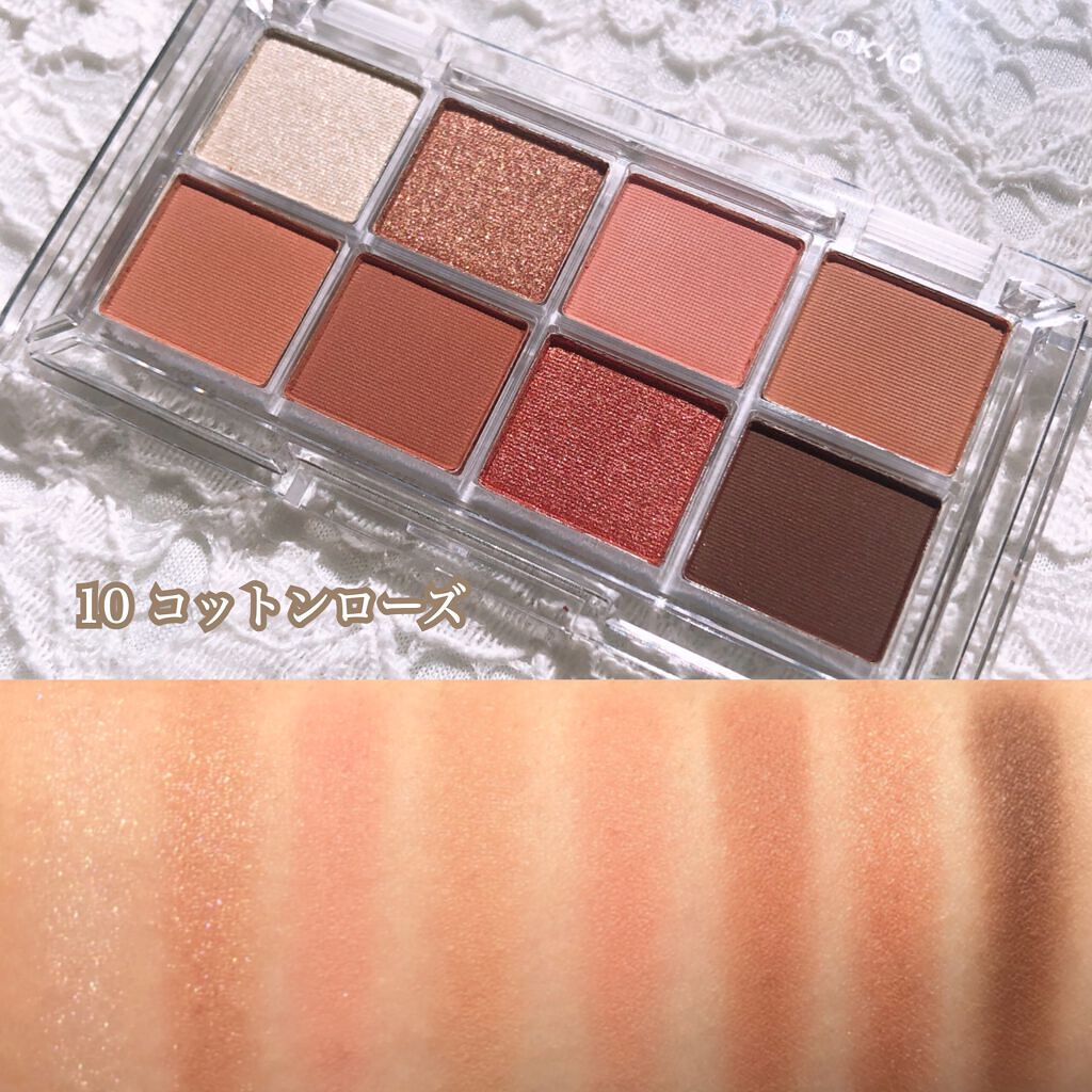- 8色の豊富なカラーバリエーションが毎日のメイクに幅を持たせるアイパレット。 上品なパール感がナチュラルで魅力的な目もとを演出。 色を組み合わせで、綺麗なグラデーションを作れるように計算されたパレットです。