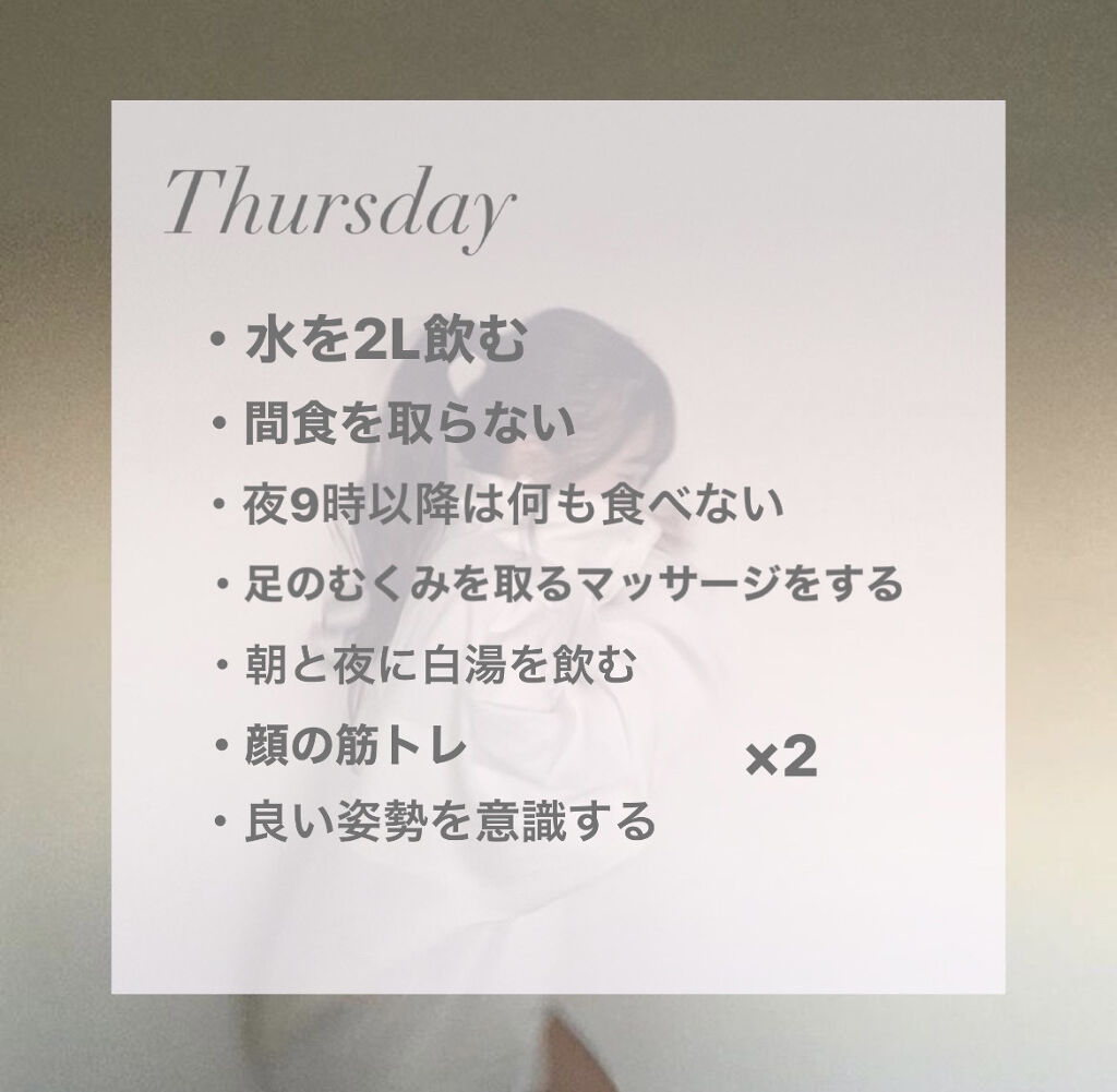 『新学期までにかわいくなろう!』1週間の本気ダイエットweek!❄️Sunday痩せる習慣を身につけつつ筋トレスタート!きついとは思うけどメニュー通りこなせば必ず痩せます!☁️Mondayマッサージも筋トレと同様大事です!少し時間がかかってし...
