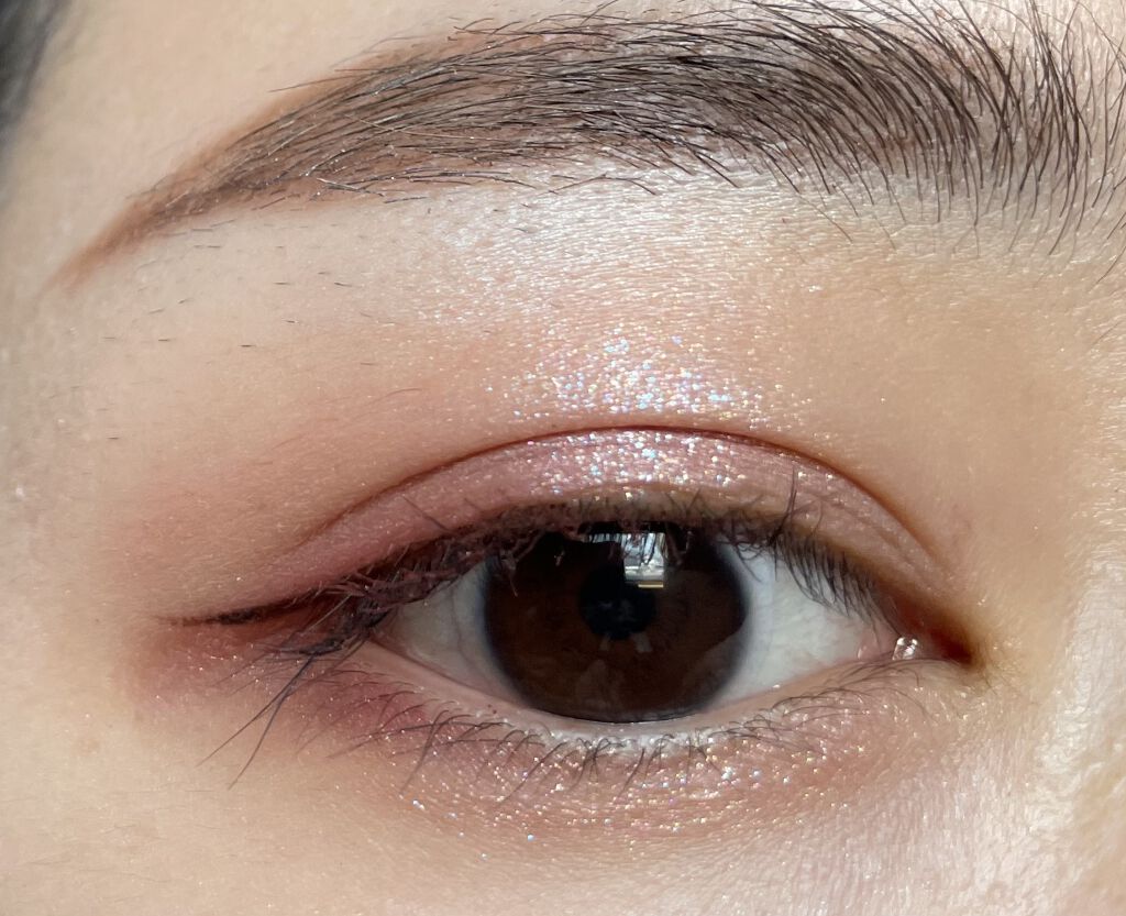 今回のアイシャドウは想像していたよりも発色が淡めでした。腕に出す時はなんぼでもぐりぐり濃くできますが、まぶたにのせる時は優しく何度も重ね塗りしなければなりませんでした。 ラメが超尊いです😍 あと、カラーアイライナーも超オススメです!発色もフェルトの描きやすさも落ちにくさも文句無しです!