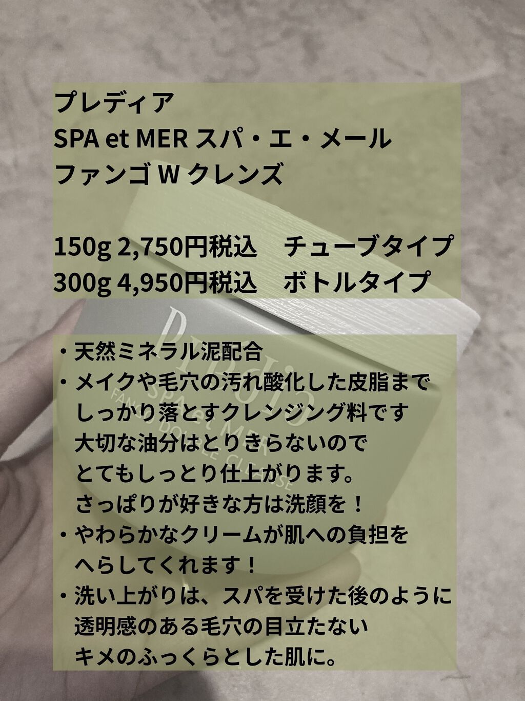 商品詳細情報Prédia プレディア スパ・エ・メール ファンゴ W クレンズ