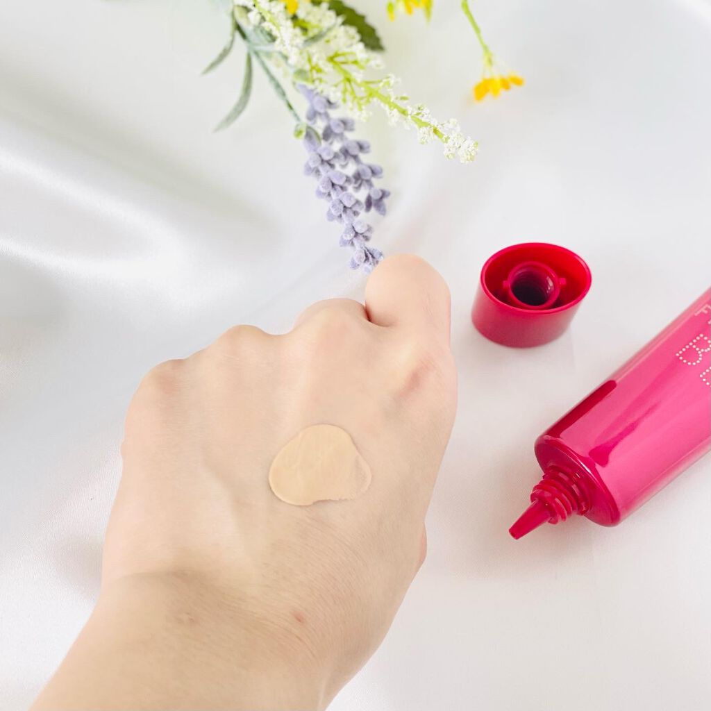 最近はマスクで顔もほとんど見えないし、メイクするのが面倒!って思う機会が増えてきました💦 思っていたよりファンデーションに近い、しっかりとした色づき! だけど乳液のようにスーッと伸ばしやすいテクスチャー♪ 気になる部分は重ね塗りするとカバー力もアップします⤴️ 毛穴ケア成分や黒ずみ毛穴カバーパウダー、スーパー皮脂固化成分が配合されているのも嬉しいです! SPF50+ PA++++なので、これ1つで紫外線対策までできます☀️