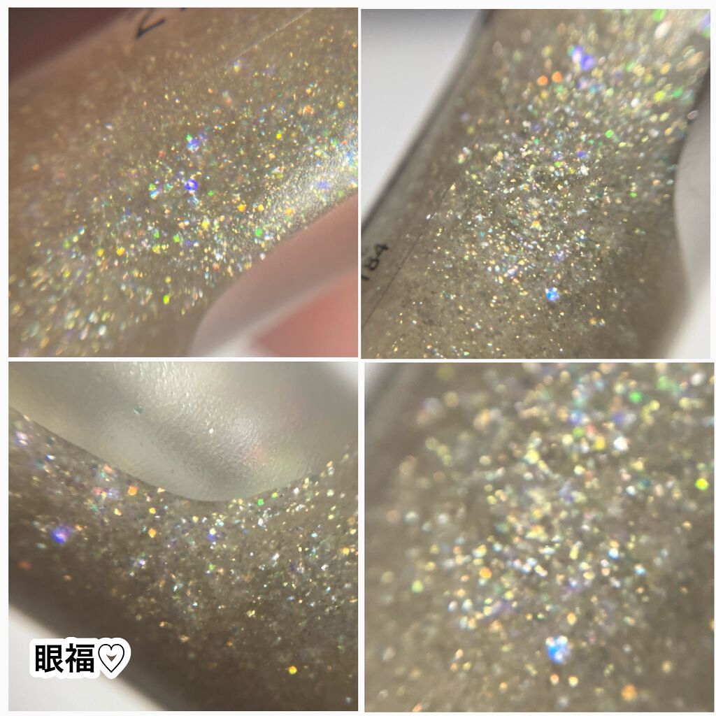 - 大粒すぎないから使いやすい! 高輝度ラメたっぷりのカラフルグリッター ラメの粒子サイズを大きくしすぎないことで、 悪目立ちしない絶妙な輝きに仕上げました。 ベース液にパールを多めに配合しているため、 サラッと控えめに塗ってもしっかり輝きます! やわらかく使い勝手の良い極細筆で、狙ったところにラメをオン! ☆使い方☆ 下まつげのキワに沿って 本品で細くアイラインを引くと、 オーロラに輝く印象的な目元の完成!