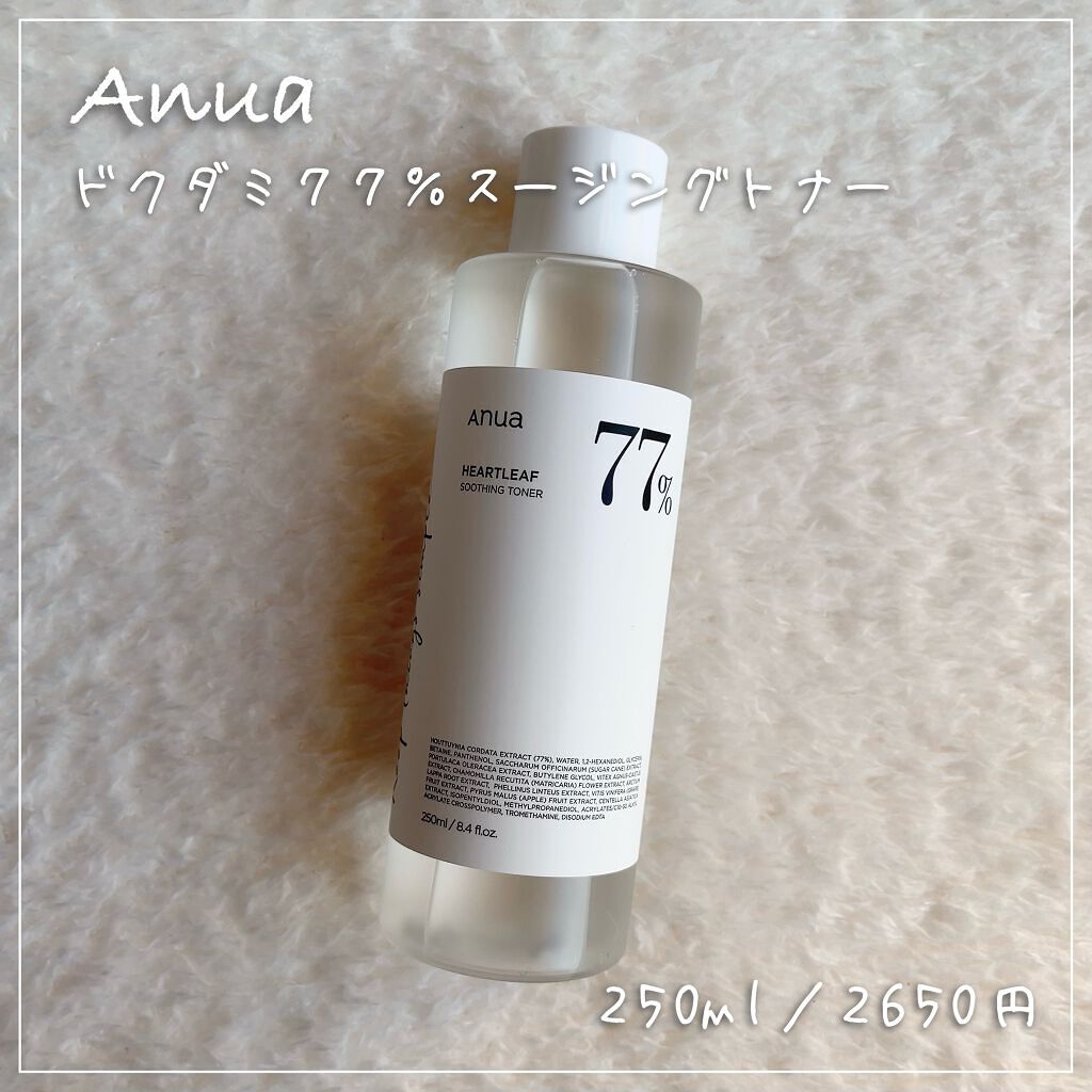韓国のスキンケアブランドAnua✨️ この、Anuaドクダミ77 スージングトナーは、ドクダミエキスを77%含有しているトナーで、ドクダミは、抗炎症作用や鎮静効果があり、敏感肌やトラブル肌のケアに適しています!!! 本当に鎮静効果が強い。肌が落ち着いてくれる! 肌の鎮静・冷却効果、炎症を抑えてくれる効果があるから、紫外線の時期にも助かるし、水分補給・保湿効果もじゅうぶんだから、乾燥する季節にもぴったり! 特に敏感肌や肌荒れ、ニキビが気になる方におすすめのトナーです。