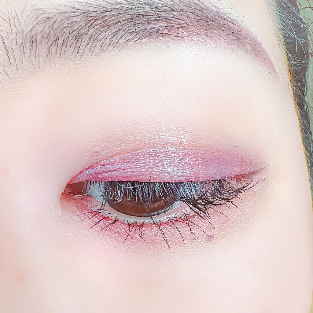 ピンクにグレージュも良いですね👌💗 今日は可愛らしい感じにしてみました💕 上下瞼黒目〜目頭側にラメを塗ってキラキラさせております🤩 目尻はマットのピンクを濃いめに重ねて💗 グレージュのアイライナーと相性◎