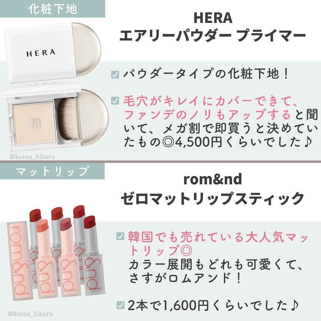 ウォンジョンヨの下地も早速レビュー!!🔥 思っていたよりも、素肌に溶け込み馴染むカラーでした💛 ツヤ肌好きさんに推したいのが、ダルバ✨ 韓国オリヤンでも1位になっていて、よく現地でも広告を見かけます😍 あとバニラコのプライマーもご紹介!🫶 去年も推していた、too cool for schoolの下地にそっくりの使用感で、こちらも馴染ませるとサラッサラに変化します💡 仕込むだけで、毛穴落ちが軽減するので、ぜひチェックしてみてくださいね🤭✨