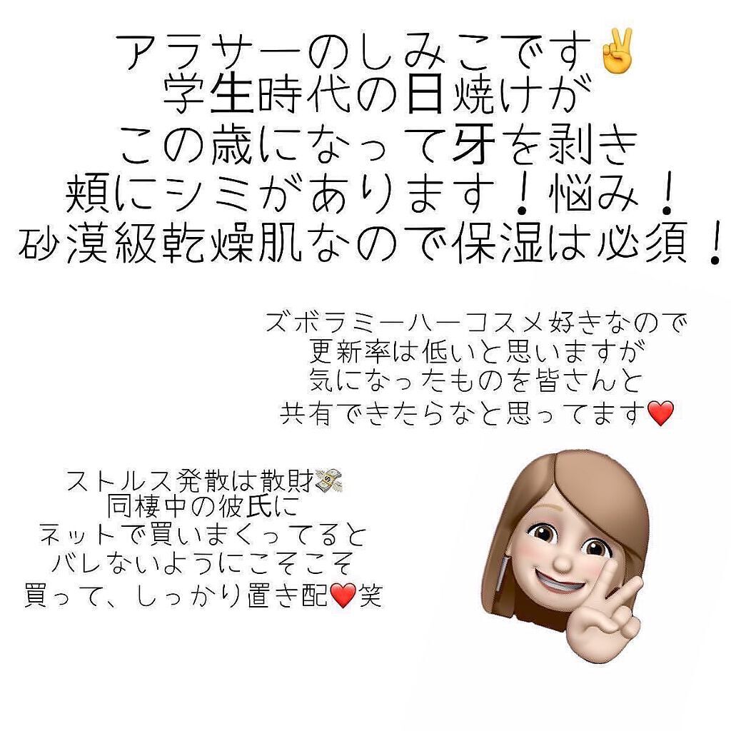 | スキンケアランキング第50位 | 肌に水分を足しつつ頬の赤みが 落ち着きやすい所が一番すき♡ 保湿力を感じますがさっぱりめな印象 | 詳細を見る | |
