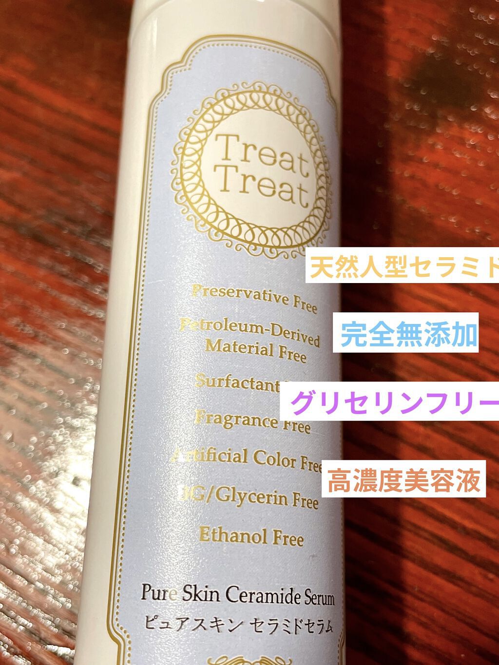 TreatTreatトリートトリートピュアスキンセラミドセラム業界初!天然ヒト型フリーセラミドを合成界面活性剤を使用せずに配合した美容水🥰★ヒト型セラミド21種類のバリエーションが、お肌にハリと潤いを与えて、さらに大幅増量されたセラミドの素、...