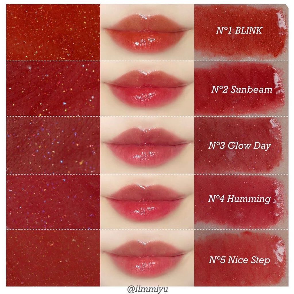 - 軽いオイルテクスチャーでべたつかず色移りが少ない、照り輝くパールコーティングティント。 グリッターパールがぶっくりした唇を、ローズヒップオイルやオリーブオイルやアボカドオイルなどがうるっとした唇を演出。