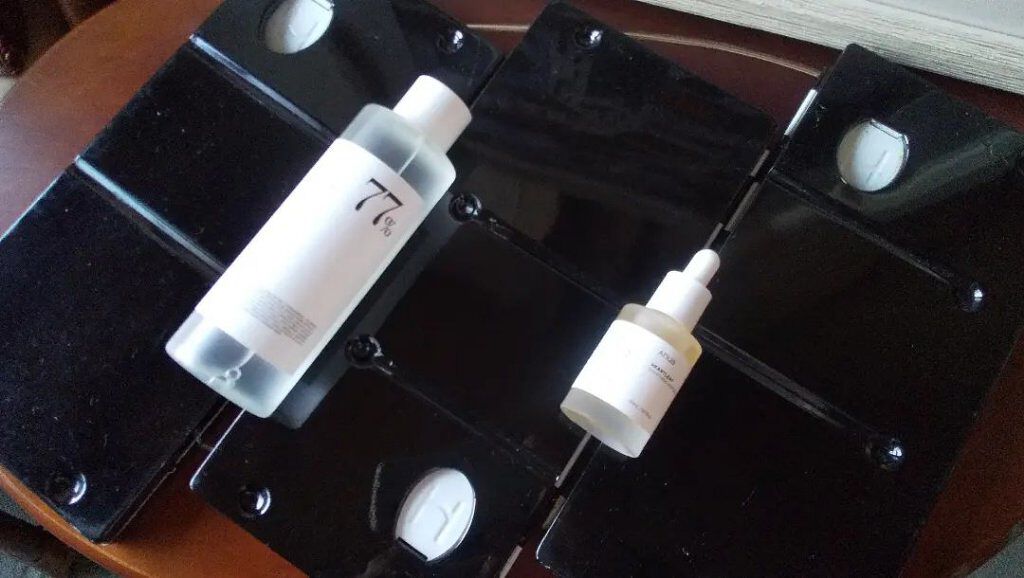 ボトルにでっかく書いてある77はドクダミソウエキスが配合されている割合のこと! ドクダミソウエキスには、抗炎症作用(炎症や赤みを抑える)や抗酸化作用(シミやシワを防ぐ)などが含まれている! でもサラッとしていて使いやすいから肌荒れしてない調子の良い日に使ってる!