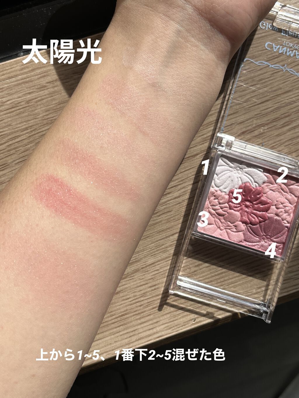 上品なローズカラーのチーク&ハイライトです♡ 透け感のある柔らかい発色で、右下の色も意外とふんわり色づきます ナチュラルな仕上がりのツヤチーク探してる方におすすめです👍🏻