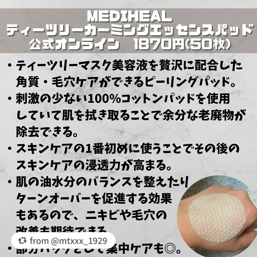 商品詳細情報MEDIHEAL ティーツリーカーミングエッセンスパッド