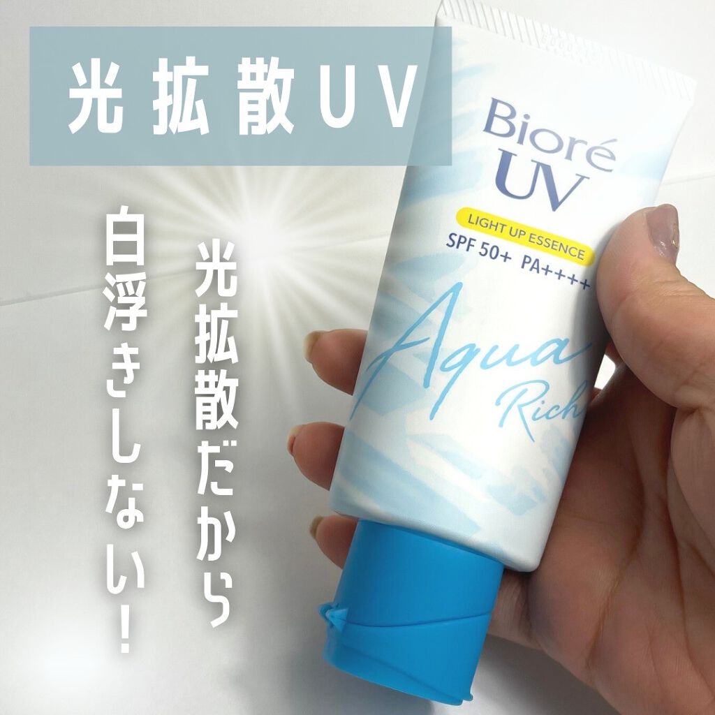 くすみぶっ飛ぶ日焼け止め(メイクアップ効果による)ビオレUVアクアリッチライトアップエッセンスくすみがメイクアップ効果によりぶっ飛んだように見えるビオレUVアクアリッチライトアップエッセンスを紹介します♡SPF50+・PA++++肌表面にキメ...