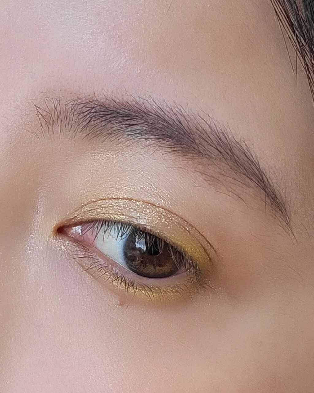 アイブロウは#whomeeのレッドブラウンを使用。 アイメイクは①#アンドビーの#クリームアイシャドウ マスタードを上下の瞼に。 アイメイクは②#misshaの#グリッタープリズムシャドウマーブル #ストームプリズムを①に重ねて。 下瞼は全体ではなく、黒目下にだけ✨ アイメイクは③#hinceの#ニューアンビエンスカラーアイライナー #エクレクティックを4枚目のように三角形に入れる。 チークは⑤#bisouの#ダイヤモンドグロウ マーズをほんのり✨ リップは⑥①のマスタードを塗った後に#celvokeの#エンスロールマットリップス 03を💋