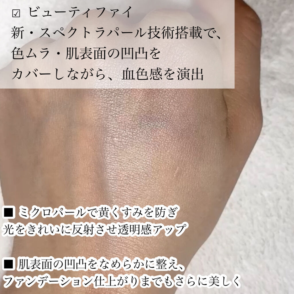 | ベースメイクランキング第56位 | なめらかテクスチャーでスルスルと伸びが良く、 均一に広げやすく、しっとり感がある。 | 詳細を見る | |