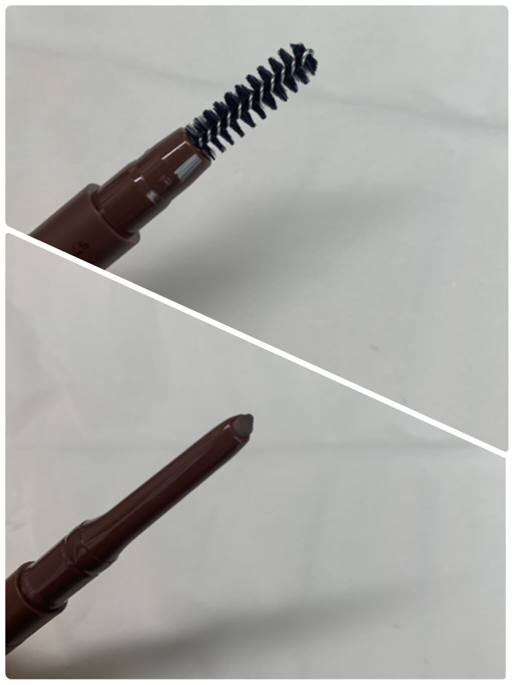 - 描き足しながらぼかせる。 ペンシルとパウダーを一つの芯にまとめた 2層芯アイブロウ ●しずく型2色グラデ芯で、自眉となじむ自然な仕上がり ー角の濃いカラーで、1本1本毛を描き足せるような細いラインを実現 ー面の淡いカラーで、自然にぼかしたような仕上がりを実現 ●毛流れを整え、自然になじませるスクリューブラシつき ●ウォータープルーフ処方 ●汗、皮脂、こすれに強く、美しい仕上がりが長時間持続 ●トリートメント成分配合 ースクワラン ●無香料 ●アレルギーテスト済(すべての方にアレルギーが起きないというわけではありません) <使い方> ●芯を2mm程度繰り出してお使いください。 ●芯の角で眉毛を1本1本描き足し、眉頭や輪郭は芯の面の部分でなじませるようにぼかします。 ●芯の出しすぎや落下などの衝撃により折れることがありますのでご注意ください。 ●ご使用後は、芯をもとにくり戻しキャップをきちんとしめてください。 ●ブラシはいつも清潔にしてお使いください。 ●日のあたるところや高温のところにおかないでください。 ●まれに芯の表面に白い粉のようなものがみられますが、品質上問題はありません。
