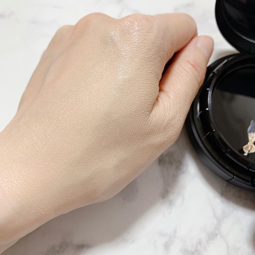 さらりとしているけど少しオイルのコクも感じるようななめらかで伸ばしやすいテクスチャーです。 ファンデーションというより、ほぼほぼ美容液オイルを伸ばしているような感覚。 薄膜でナチュラル。素肌感を残した仕上がりで、元の肌がほんのり透けるけど、色ムラやくすみはしっかりカバーしてくれます。 付け心地はほんとにスキンケア後なようなしっとり感! 夕方になると乾燥肌の私でも若干テカッきますがドロッとした汚いヨレ方、崩れ方にはならずティッシュオフすれば元通り。 肌がカピッとしてきやすい今の季節にこそヘビロテしたいファンデーションです♡