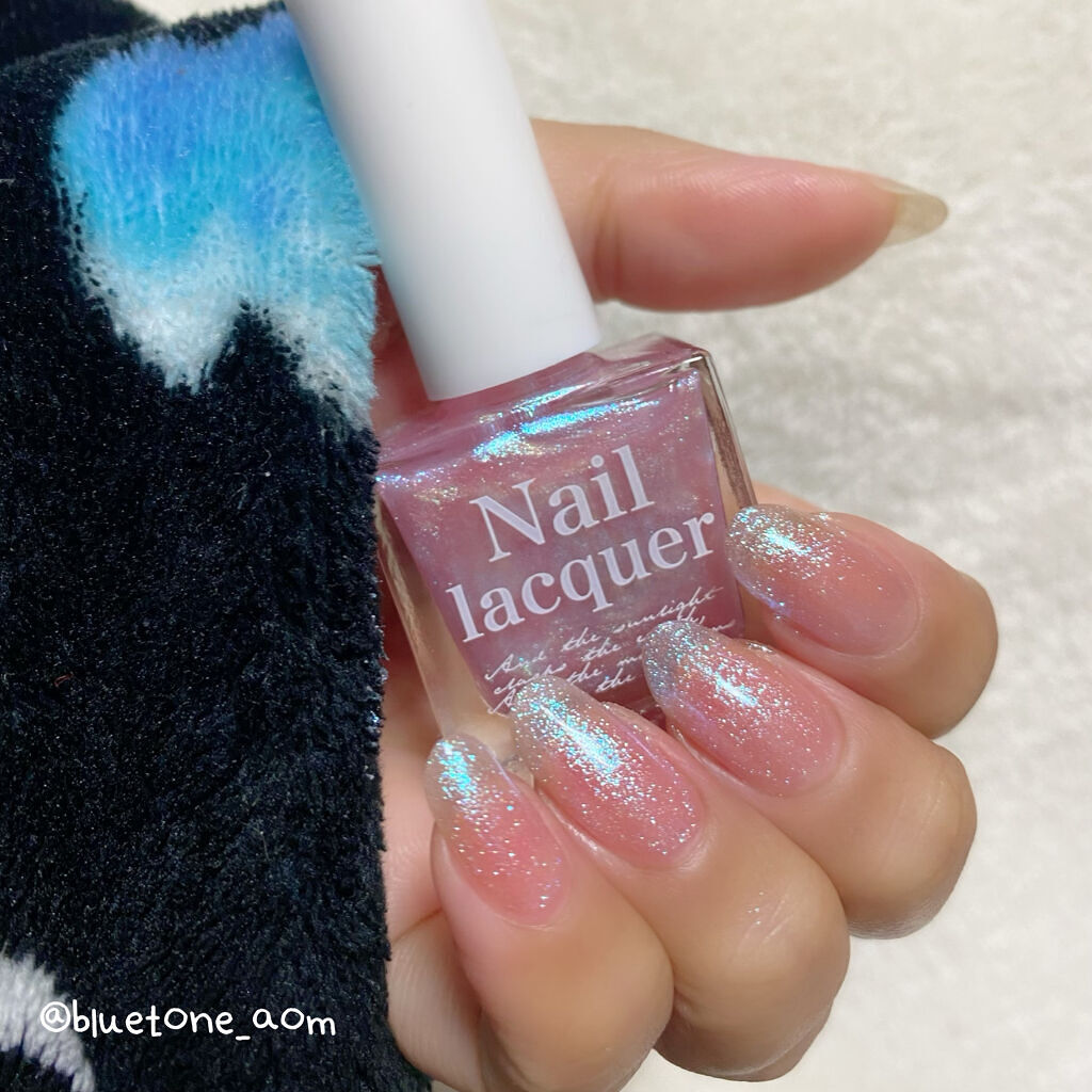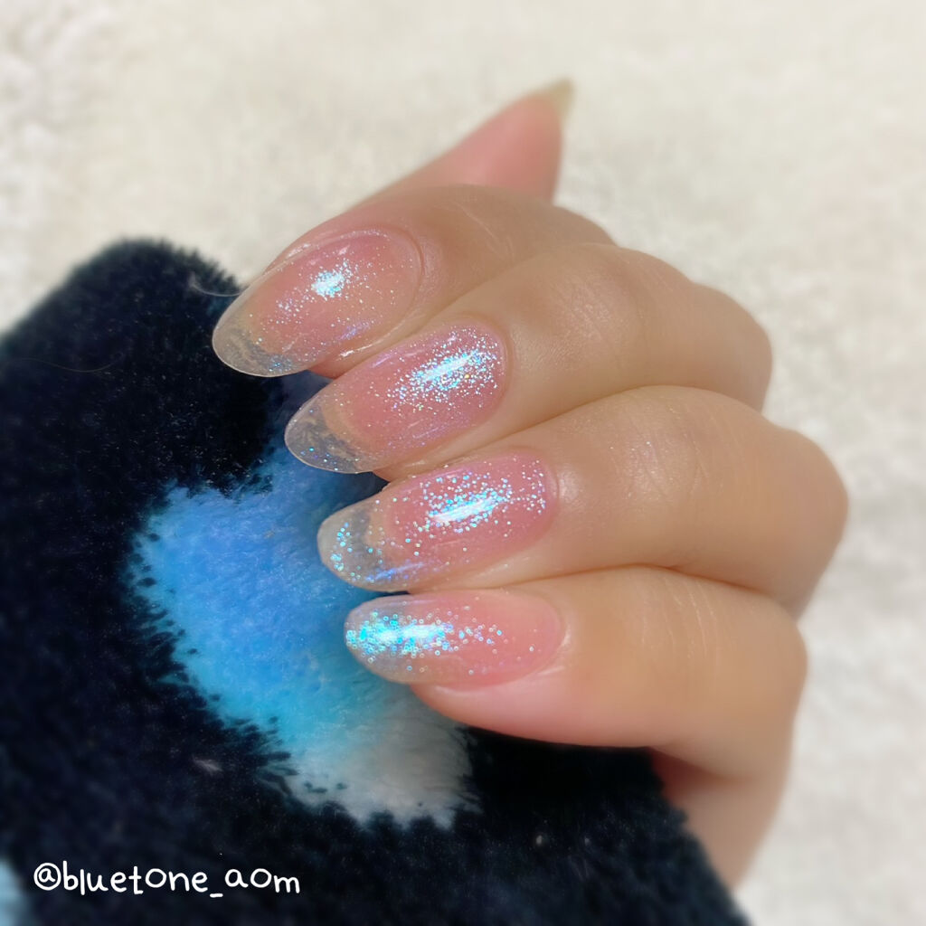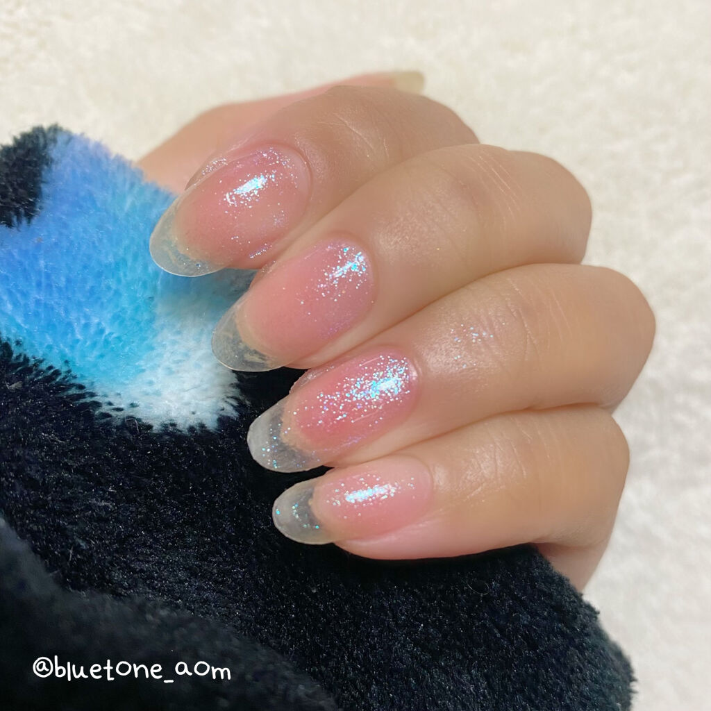 ラメがしっかりしてるし クリアカラーが入ってるから オーロラパウダー無しでも 充分キラキラしました! 反射強めのフィルムなので 実物はもっと うるうるとキラキラが強いです! ビー玉みたい🥺 ネイルシール長持ちさせたいけど ちょっと飽きてきたな〜って時とかに 全然違った印象になるのでオススメです! Seriaのベースジェル 本当にうるうるネイルしやすいので オススメしたい🙆♀️
