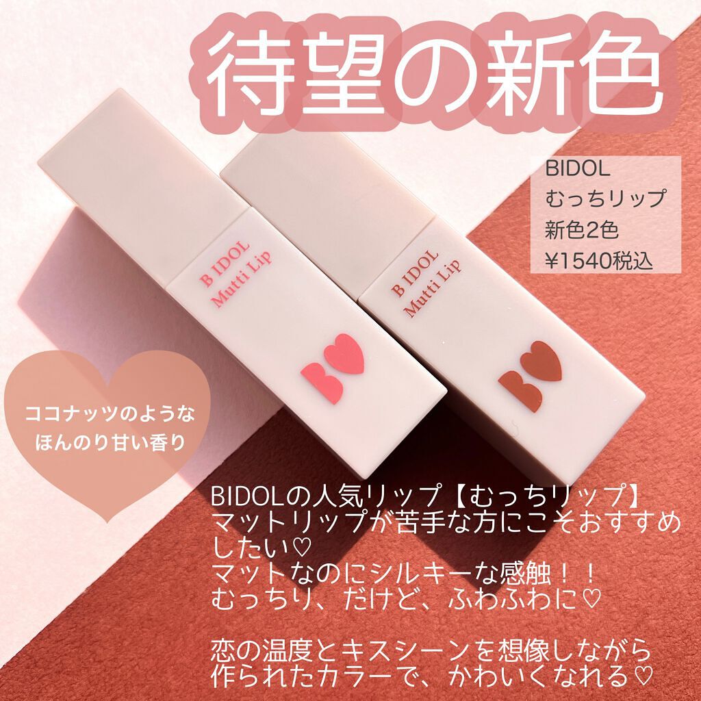 艶リップ好きな私が唯一日常使いしている むっちリップ! 使い心地が本当に良くて、マットリップ特有のペタッと感やパサパサ感がなく なんかこのリップを使うと唇がふんわりボリューム出て、とにかく毎回ワクワクした気持ちにさせてくれます◎ 特にアラサーの私がおすすめなのが02ふいうちレッド♡ ブルベイエベ、年齢関係なく似合う日常使いしやすいレッドで、お肌を明るく見せてくれます!