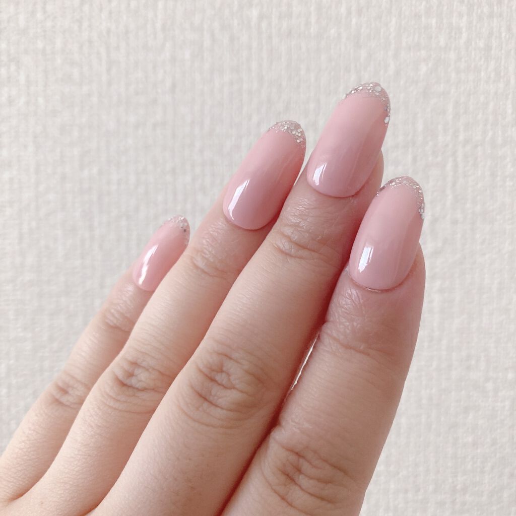 こちらの色が春にぴったりな優しいピンクで 本当に可愛い(*´꒳`*)♡♡♡ 2度塗りでこんなに高発色!! しかもオフィスネイルでも大丈夫そうな 肌馴染みがいい色で可愛い♡ ラメフレンチにしたら大人っぽさが増して それはそれは綺麗でした_:(´ཀ`」 ∠):