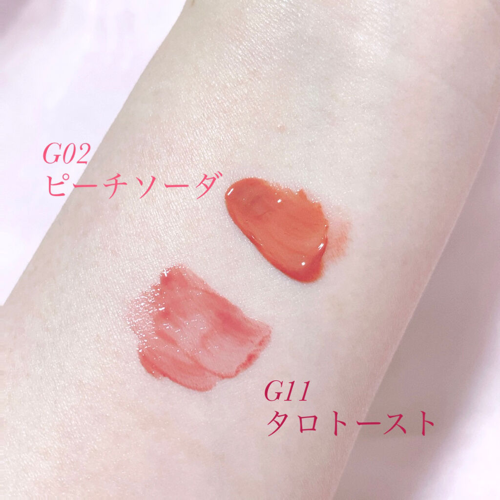 - 果汁のシロップのようなジューシーなみずみずしさがなめらかに広がり軽やかな付け心地のウォータリングティント。 ビタミンEの保湿成分でティントなのに乾燥しにくく、みずみずしいガラスのような光沢とカラーでボリューム感をキープしながらぷるっとしたグラマラスな唇に仕上がります。 2色使いで楽しむグラデリップも。