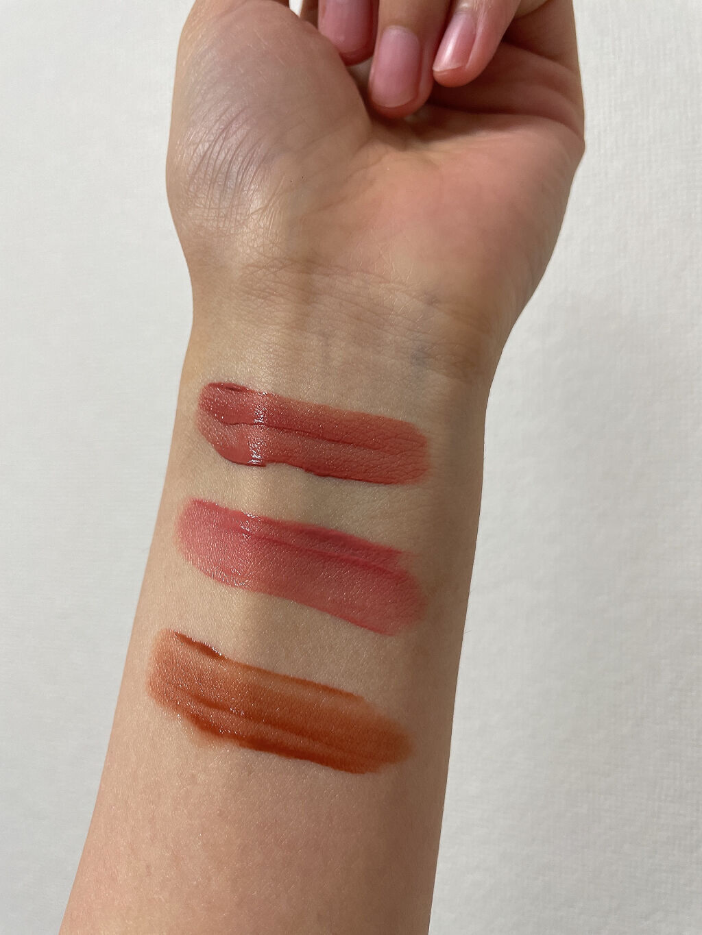 どれも可愛らしいカラーで唇が自然にふっくら見える☺️ ティッシュオフしなければかなりツヤんとしたリップ! PK851わがままな肉球、RO650チェリーの自惚れ上記はブルベさん向けですがイエベの私でもパソカ関係なく使いやすいように感じました! 特にOR250海星の恋心RD450金魚の恥らいBR350林檎の口づけが好みでした!
